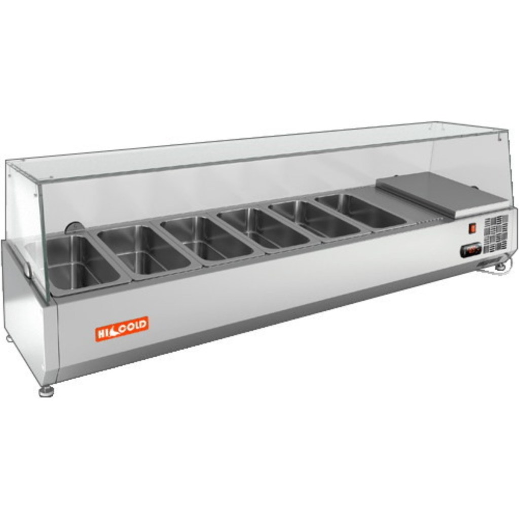Каталог оборудования Холодильное оборудованиеВитрины для ингредиентовВитрина холодильная для ингредиентов HICOLD VRTG 1485 1/4 Витрина холодильная для ингредиентов HICOLD VRTG 1485 1/4 Код товара: 064-455 Поделиться: WhatsAppTelegram СравнитьДобавить в КПВ избранное 0 62 955 ₽ В корзину 0 шт Под заказСамовывоз сегодня бесплатно Взять в кредит Купить в лизинг Получить консультацию в WhatsApp Описание Характеристики Отзывы 0 Инструкции 2 Витрина холодильная для ингредиентов HICOLD VRTG 1485 1/4 предназначена для охлаждения, кратковременного хранения и наглядной демонстрации ингредиентов, салатов и готовых блюд на предприятиях общественного питания и в торговых точках. Гастроёмкости в комплект не входят, приобретаются отдельно. Основные особенности: Корпус выполнен из нержавеющей стали, обеспечивая долговечность и легкость в уходе; Электронная панель управления для точной настройки температуры; Модель с надстройкой из стекла (исполнение G) для удобной демонстрации продуктов; Высота витрины — 225 мм, высота стеклянной надстройки — 205 мм; Вместимость: 6 гастроёмкостей GN1/4; Опорные ножки для устойчивой установки на столешнице. HICOLD VRTG 1485 1/4 — компактная и функциональная настольная витрина, идеально подходящая для демонстрации и кратковременного хранения продуктов на профессиональной кухне или в торговой зоне.Изображение товара, представленного на фото, может отличаться от его фактического вида. Показать все Габаритные размеры1485×325×459 ммДиапазон рабочей температурыот +2 до +7 °CДлина1485 ммГлубина325 ммВысота459 ммТип крышкиСтеклянная Гастроемкостей6 штТип гастроемкостейGN1/4 Мощность150 ВтНапряжение220 ВТип охлажденияСтатическое Материал изготовленияНержавеющая сталь ХладагентR134 Мощность0,15 кВтВес нетто48 кгВес брутто91 кгТип оттайкиРучная Габариты в упаковке1670×590×550 ммБрендHicold Оставить отзыв Еще никто не оставил отзыв на этот товар Инструкция на HICOLD VRTG 1485.pdfДекларация о соответствии.pdf Похожие товары Перейти в каталог Под заказ 50 860 ₽ Витрина холодильная для ингредиентов HICOLD VRTU 1390 1/4 Под заказ 67 060 ₽ Витрина холодильная для ингредиентов HICOLD VRX 1800 1/4 Под заказ 58 528 ₽ Витрина холодильная для ингредиентов HICOLD VRTG 1000 1/3 Под заказ 58 500 ₽ Витрина для ингредиентов Carboma A40 SM 1,4 (5 GN1/3) Под заказ 64 467 ₽ Витрина холодильная для ингредиентов HICOLD VRTG 1390 1/3 В наличии 34 878 ₽ Витрина холодильная для ингредиентов Cooleq VRX 1200/380 Под заказ 50 751 ₽ Витрина холодильная для ингредиентов HICOLD VRTO 1425 1/3 Под заказ 55 501 ₽ Витрина для ингредиентов Carboma A30 SM 1,4 (6 GN1/4) С этим товаром покупают В наличии 63 864 ₽ Шкаф холодильный МХМ Капри 0,5МВ Ранее просмотрено Под заказ 89 847 ₽ Витрина холодильная для ингредиентов HICOLD VRTG 2360 1/3