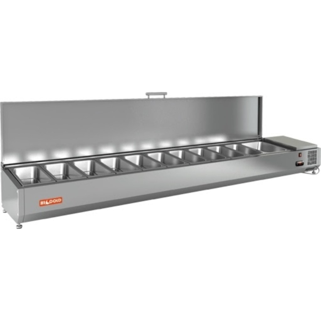 Каталог оборудования Холодильное оборудованиеВитрины для ингредиентовВитрина холодильная для ингредиентов HICOLD VRTU 2360 к PZ4 1(/3) Витрина холодильная для ингредиентов HICOLD VRTU 2360 к PZ4 1(/3) Код товара: 064-671 Поделиться: WhatsAppTelegram СравнитьДобавить в КПВ избранное 0 68 409 ₽ В корзину 0 шт Под заказСамовывоз сегодня бесплатно Взять в кредит Купить в лизинг Получить консультацию в WhatsApp Описание Характеристики Отзывы 0 Инструкции 3 Витрина холодильная для ингредиентов HICOLD VRTU 2360 к PZ4 1(/3) предназначена для охлаждения, кратковременного хранения и демонстрации ингредиентов, салатов и готовых блюд на предприятиях общественного питания и торговли. Устанавливается на холодильные столы для пиццы серии PZ4 благодаря встроенным креплениям в нижней части корпуса. На фото показана аналогичная модель с настольной установкой. Ключевые особенности: Корпус из нержавеющей стали — долговечность и лёгкость ухода. Электронная панель управления — точная настройка температуры. Исполнение U — оснащена крышкой для защиты продуктов. Высота витрины — 279 мм — компактное размещение на рабочей поверхности. Вместимость: 10xGN1/3 + 1xGN1/2 — рациональная организация хранения (гастроёмкости приобретаются отдельно). Совместимые модели столов: PZ4-111/GN HICOLD VRTU 2360 к PZ4 1(/3) — это профессиональная настольная витрина, которая сочетает компактные размеры, современное управление и надежную защиту ингредиентов. Отличный выбор для пиццерий, ресторанов и кафе, где важны удобство доступа, сохранность продуктов и высокая скорость работы.Изображение товара, представленного на фото, может отличаться от его фактического вида. Показать все Габаритные размеры2360×385×279 ммДиапазон рабочей температурыот +2 до +7 °CДлина2360 ммГлубина385 ммВысота279 ммТип крышкиМеталлическая Гастроемкостей11 штТип гастроемкостейGN1/2, GN1/3 Напряжение220 ВТип охлажденияСтатическое Материал изготовленияНержавеющая сталь ХладагентR134 Мощность0,15 кВтВес нетто47 кгВес брутто83 кгТип оттайкиРучная Габариты в упаковке2500×485×379 ммБрендHicold Оставить отзыв Еще никто не оставил отзыв на этот товар Инструкция на HICOLD VRTU 2360 к PZ4.pdfСхема установки на витрину.jpgДекларация о соответствии.pdf Похожие товары Перейти в каталог В наличии 91 697 ₽ Витрина холодильная для ингредиентов TEFCOLD VK38-150 Под заказ Цена по запросу Витрина для ингредиентов Polair VT2-G (1/3) открытого типа С этим товаром покупают В наличии 96 446 ₽ Стол холодильный среднетемпературный Polair ТМ2-G Под заказ 108 783 ₽ Стол морозильный HURAKAN HKN-GN2BT В наличии 38 038 ₽ Льдогенератор Cooleq BF-20 (пальчики) В наличии 83 720 ₽ Шкаф холодильный МХМ Капри 0,7М Ранее просмотрено Под заказ 277 583 ₽ Электрическая сковорода Аbat ЭСК-90-0,67-150 Под заказ 138 003 ₽ Дверь холодильная распашная двустворчатая НТ-РДД-2200*3000/80 Под заказ 130 810 ₽ Дверь холодильная распашная двустворчатая НТ-РДД-2200*2800/80 Под заказ 64 522 ₽ Витрина холодильная для ингредиентов HICOLD VRTO 2360 к PZ4 (1/3) Под заказ 155 316 ₽ Стол холодильный среднетемпературный Abat СХС-60-02 с бортом (дверь, дверь, ящики 1/2) Под заказ 54 369 ₽ Витрина холодильная для ингредиентов HICOLD VRTO 1835 к PZ3 (1/3) Под заказ 55 557 ₽ Витрина холодильная для ингредиентов HICOLD VRTO 1915 к PZ4 (1/3)