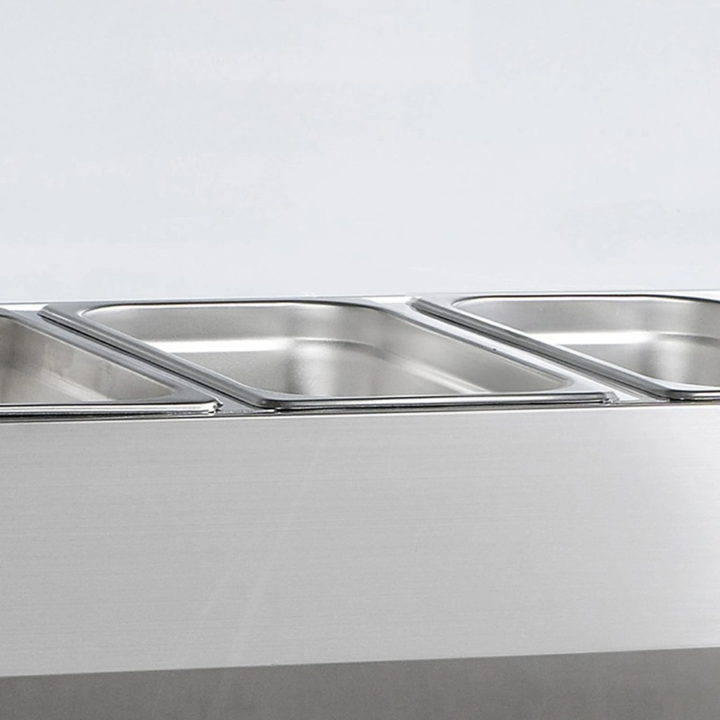 Каталог оборудования Холодильное оборудованиеВитрины для ингредиентовВитрина холодильная для ингредиентов TEFCOLD VK33-160 Витрина холодильная для ингредиентов TEFCOLD VK33-160 Код товара: 067-495 Поделиться: WhatsAppTelegram СравнитьДобавить в КПВ избранное 0 99 036 ₽ В корзину 0 шт В наличииСамовывоз сегодня бесплатно Взять в кредит Купить в лизинг Получить консультацию в WhatsApp Описание Характеристики Отзывы 0 Витрина холодильная для ингредиентов TEFCOLD VK33-160 предназначена для кратковременного хранения и демонстрации готовых салатов, мясных и рыбных закусок, а также ингредиентов на предприятиях общественного питания и торговли. Корпус и внутренняя обшивка выполнены из нержавеющей стали, обеспечивая долговечность и легкость очистки. Гастроемкости в комплект не входят. Особенности: Статическое охлаждение — равномерное поддержание температуры, подходит для деликатных продуктов. Механическое размораживание — надежное удаление наледи без вмешательства пользователя. Хладагент R600a — экологичный и энергоэффективный. Электронный термостат и градусник — точная настройка и контроль температуры. Гнутый стеклянный колпак — обзор продукции и защита от внешних воздействий. Регулируемые ножки — удобная установка и устойчивость на неровной поверхности. Климатический класс 4 — работа при температуре окружающей среды до +32°C. Вместимость — 7×GN 1/4 глубиной 150 мм, удобно для салатов и закусок. Перегородки — 6 длинных и 1 короткая для удобного разделения продуктов. Уровень шума: 47 дБ — почти бесшумная работа. Хладагент: 0,04 кг — эффективное охлаждение при минимальном расходе. Внутренние размеры: 1245×245×155 мм — компактное размещение емкостей. TEFCOLD VK33-160 — надежная и удобная в эксплуатации витрина для демонстрации и кратковременного хранения продуктов с безопасным поддержанием температуры.Изображение товара, представленного на фото, может отличаться от его фактического вида. Показать все Габаритные размеры1600×335×435 ммДиапазон рабочей температурыот +2 до +10 °CДлина1600 ммГлубина335 ммВысота435 ммТип крышкиСтеклянная Гастроемкостей7 штТип гастроемкостейGN 1/4 Мощность0,112 ВтНапряжение220 ВТип охлажденияСтатическое Уровень шума47 дБКлиматический класс4 ХладагентR600a Вес нетто50 кгВес брутто55 кгТип оттайкиРучная Габариты в упаковке1680×380×310 ммБрендTefcold Оставить отзыв Еще никто не оставил отзыв на этот товар Похожие товары Перейти в каталог В наличии 51 291 ₽ Витрина холодильная для ингредиентов HICOLD VRTO 1485 1/3 В наличии 54 963 ₽ Витрина холодильная для ингредиентов HICOLD VRTU 1485 1/3 С этим товаром покупают В наличии 111 237 ₽ Стол морозильный Cooleq GN2100BT Под заказ 132 962 ₽ Льдогенератор HURAKAN HKN-GB85 В наличии 111 644 ₽ Шкаф холодильный Polair СМ 107-G Ранее просмотрено В наличии 100 021 ₽ Витрина холодильная для ингредиентов TEFCOLD VK38-180 В наличии 95 391 ₽ Витрина холодильная для ингредиентов TEFCOLD VK38-160 В наличии 82 344 ₽ Ларь морозильный TEFCOLD FR205S SL крышка нерж. В наличии 118 325 ₽ Ларь морозильный TEFCOLD FR405S SL крышка нерж. В наличии 129 526 ₽ Ларь морозильный TEFCOLD FR505S SL крышка нерж. В наличии 101 613 ₽ Витрина холодильная для ингредиентов TEFCOLD VK33-180 S/S LID В наличии 83 673 ₽ Витрина холодильная для ингредиентов TEFCOLD VK38-120 S/S LID
