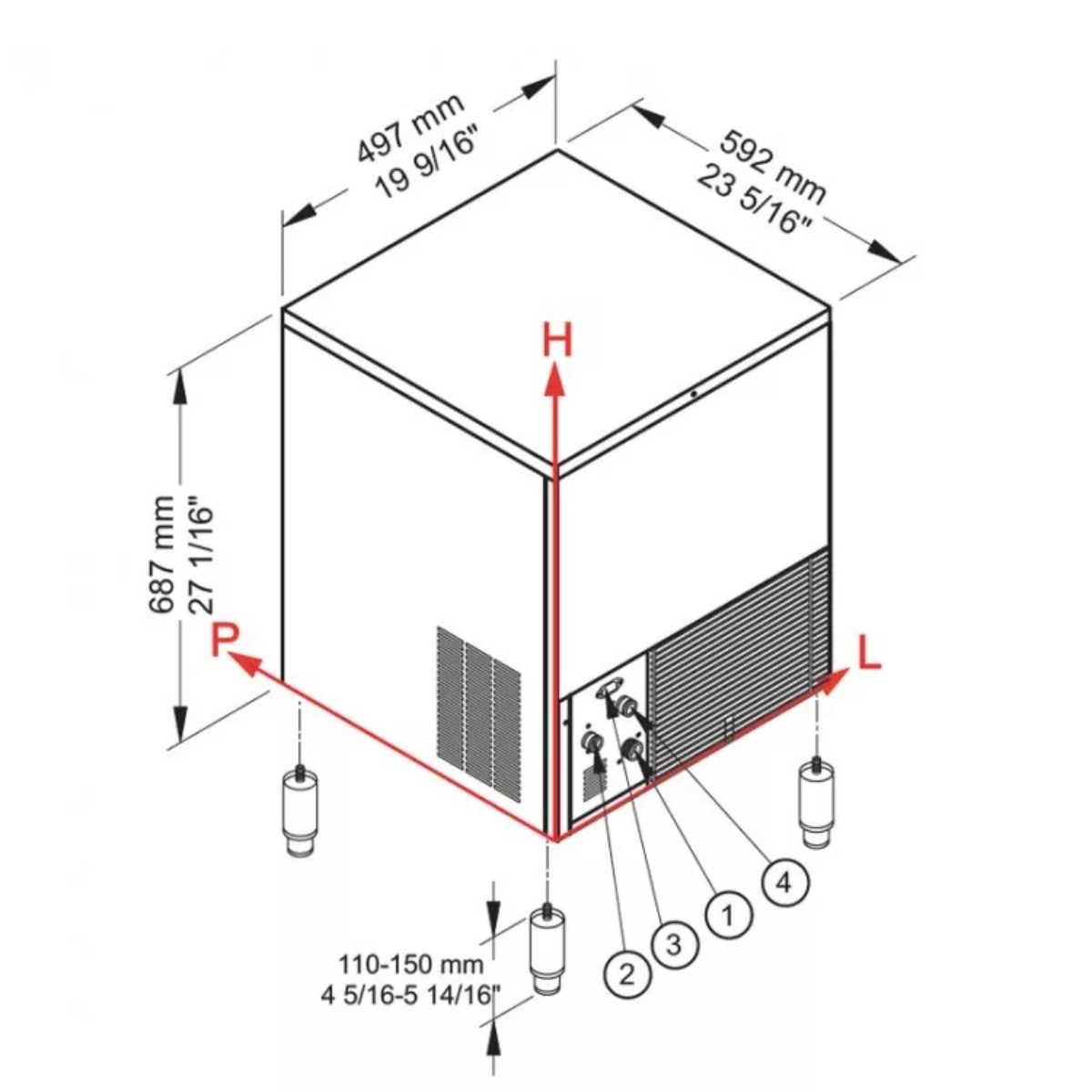 • Суточный выход льда – 42 кг, объем бункера – 16 кг;