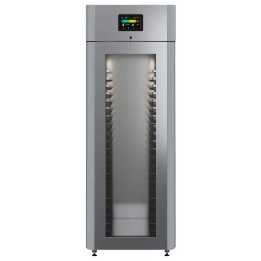 Каталог оборудования Холодильное оборудованиеШкафы холодильныеСпециализированные холодильные шкафыШкаф холодильный для хлебопекарных производств Polair CS107-Bakery Br со стеклом (Тип 1) Шкаф холодильный для хлебопекарных производств Polair CS107-Bakery Br со стеклом (Тип 1) Код товара: 062-622 Поделиться: WhatsAppTelegram СравнитьДобавить в КПВ избранное 0 414 545 ₽ В корзину 0 шт Под заказСамовывоз сегодня бесплатно Взять в кредит Купить в лизинг Получить консультацию в WhatsApp Описание Характеристики Отзывы 0 Инструкции 5 Шкаф холодильный для хлебопекарных производств Polair CS107-Bakery Br со стеклом (Тип 1) предназначен для создания оптимальных условий хранения и расстойки заготовок из теста на предприятиях общественного питания и торговли. Цельнозаливной корпус выполнен из нержавеющей стали, дверь — стеклопакет. Оборудование стабильно работает при температуре окружающей среды до +40 °C. В комплект входят 20 пар направляющих размером 400×600 мм. Особенности: Широкий функционал: охлаждение, замедление ферментации, хранение, регенерация, брожение и расстойка Динамическое охлаждение с мягким обдувом без заветривания и автоматическая оттайка с системой испарения конденсата Панель управления с 5" дисплеем: контроль температуры, влажности (регулируется от 60 до 95 %), скорости вентилятора и времени, а также возможность создания и сохранения программ Встроенный ультразвуковой увлажнитель (необходима система водоочистки и канализация) Эргономичная конструкция: верхнее расположение агрегата, распашная дверь со стеклопакетом, механизм самозакрывания, педаль для открытия, съёмные направляющие и легко заменяемый уплотнитель с магнитной вставкой Дополнительная защита: пластиковый бордюр по периметру камеры для предотвращения повреждений от тележек Простота ухода: штампованное углубление в дне корпуса для сбора загрязнений Экологичный хладагент R290 и энергоэффективность: потребляемая мощность — 0,55 кВт (охлаждение), 0,9 кВт (нагрев) Толщина стенки корпуса — 43 мм Polair CS107-Bakery Br со стеклом (Тип 1) — надёжный и многофункциональный шкаф, который обеспечивает полное управление процессами брожения и расстойки теста. Современная система охлаждения и увлажнения, продуманная конструкция и удобное управление делают его оптимальным решением для пекарен и кондитерских, стремящихся к стабильному качеству и высокой производительности.Изображение товара, представленного на фото, может отличаться от его фактического вида. Показать все Габаритные размеры697×1005×1960 ммДиапазон рабочей температурыот -10 до +40 °CДлина697 ммШирина1005 ммВысота1960 ммОбъём700 лКол-во дверей1 Тип двериСтеклянная Уровень влажностиот 60 до 95 %Направляющие под EN 40*6020 Расстояние между направляющими60 ммХолодильный агрегатВстроенный Тип оттайкиАвтоматическая Тип охлажденияДинамический ПодсветкаЕсть ХладагентR290 Вес нетто180 кгБрендPolairВсе специализированные холодильные шкафы Из нержавейки Оставить отзыв Еще никто не оставил отзыв на этот товар Схема POLAIR CS107 Bakery Br.jpgИнструкция на POLAIR CS107 Bakery Br.pdfБрошюра на хлебопекарное оборудование POLAIR.pdfДекларация о соответствии.pdfСертификат соответствия.pdf Похожие товары Перейти в каталог Под заказ 169 915 ₽ Шкаф холодильный для хлебопекарных производств Polair CS107 Bakery Bs Под заказ 419 900 ₽ Шкаф холодильный для хлебопекарных производств Polair CS107-Bakery Br со стеклом (Тип 2) Под заказ 252 314 ₽ Шкаф х