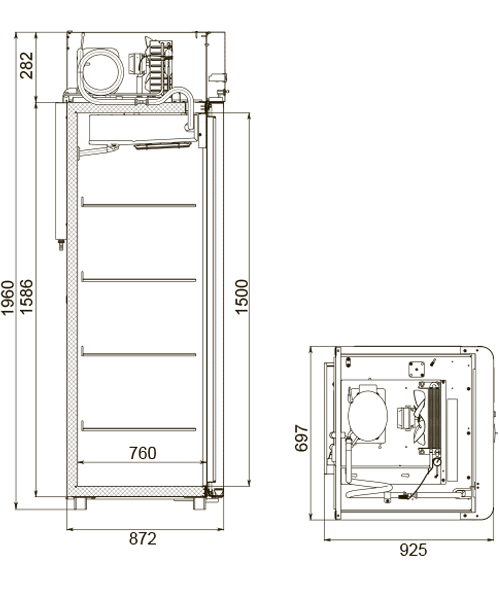 Каталог оборудования Холодильное оборудованиеШкафы холодильныеШкафы холодильные универсальные от -5 до +5 °СШкаф холодильный универсальный Polair CV107-Sm Alu Шкаф холодильный универсальный Polair CV107-Sm Alu Код товара: 062-611 Поделиться: WhatsAppTelegram СравнитьДобавить в КПВ избранное 0 129 370 ₽ В корзину 0 шт Под заказСамовывоз сегодня бесплатно Взять в кредит Купить в лизинг Получить консультацию в WhatsApp Описание Характеристики Отзывы 0 Инструкции 4 Шкаф холодильный универсальный Polair CV107-Sm Alu предназначен для демонстрации и надежного хранения продуктов на предприятиях общественного питания и торговли. Цельнозаливной корпус выполнен из стали с полимерным покрытием и оснащен алюминиевыми профилями, что обеспечивает высокую прочность конструкции и долговечность, а также подчеркивает современный премиальный дизайн. Шкаф работает при температуре окружающей среды до 40 °С и влажности воздуха до 80%. Особенности модели: Контрольная панель с быстрым доступом к настройкам, удобным возвратом в предыдущее меню и возможностью полного отключения без отдельной кнопки. Жидкокристаллический дисплей для наглядного отображения параметров. Клапан Шредера для обслуживания холодильной системы. Компенсационный клапан с ПЭНом обогрева, ПЭНы обогрева трубки слива конденсата и дверного проема — предотвращают образование льда и обеспечивают надежную работу. Распашной тип двери с возможностью изменения стороны открывания, что делает установку более гибкой. Полностью интегрированные ручки, удобные и стильные. Эластичные уплотнители с магнитными вставками для максимальной герметизации. Внутренняя подсветка вынесена на нижнюю часть фронтальной панели. Микропереключатель для автоматического отключения вентилятора и включения подсветки при открытии дверей. Регулируемые по высоте ножки для устойчивости на любом полу. Педаль для удобного открывания без рук. Замок для защиты содержимого. Высокая допустимая нагрузка на полку — до 40 кг. Размер полки: GN 2/1 (530×650 мм). Толщина стенки корпуса — 43 мм, что обеспечивает отличную теплоизоляцию. Polair CV107-Sm Alu — это функциональный и надежный холодильный шкаф с современным дизайном, который обеспечивает максимальную сохранность и удобный доступ к продуктам. Отлично подходит для ресторанов, кафе и магазинов, где важны надежность, стиль и энергоэффективность.Изображение товара, представленного на фото, может отличаться от его фактического вида. Показать все Габаритные размеры697×925×1960 ммДиапазон рабочей температурыот -5 до +5 °CДлина697 ммГлубина925 ммВысота1960 ммОбъём700 лРазмер полки530×650 ммКоличество полок4 штКоличество дверей1 штТип оттайкиАвтоматическая Тип охлажденияДинамическое Тип управленияЭлектронное Материал корпусаНержавеющая сталь Тип двериМеталлическая ЗамокЕсть Способ открыванияРаспашные ХладагентR290 Холодильный агрегатВстроенный Расположение агрегатаВерхнее Потребление электроэнергии в сутки4,5 кВтПотребляемая мощность0,4 кВтНапряжение220 ВГабариты в упаковке800×1000×2150 ммВес нетто113 кгВес брутто138 кгБрендPolairВсе шкафы холодильные универсальные от -5 до +5 °С Из нержавейки Оставить отзыв Еще никто не оставил отзыв на этот товар Схема POLAIR CV107-Sm.jpgИнструкция на POLAIR CV107-Sm.pdfДекларация о соответствии.pdfСертификат соответствия.pdf Похожие товары Перейти в каталог Под заказ 125 579 ₽ Шкаф холодильный универсальный Polair