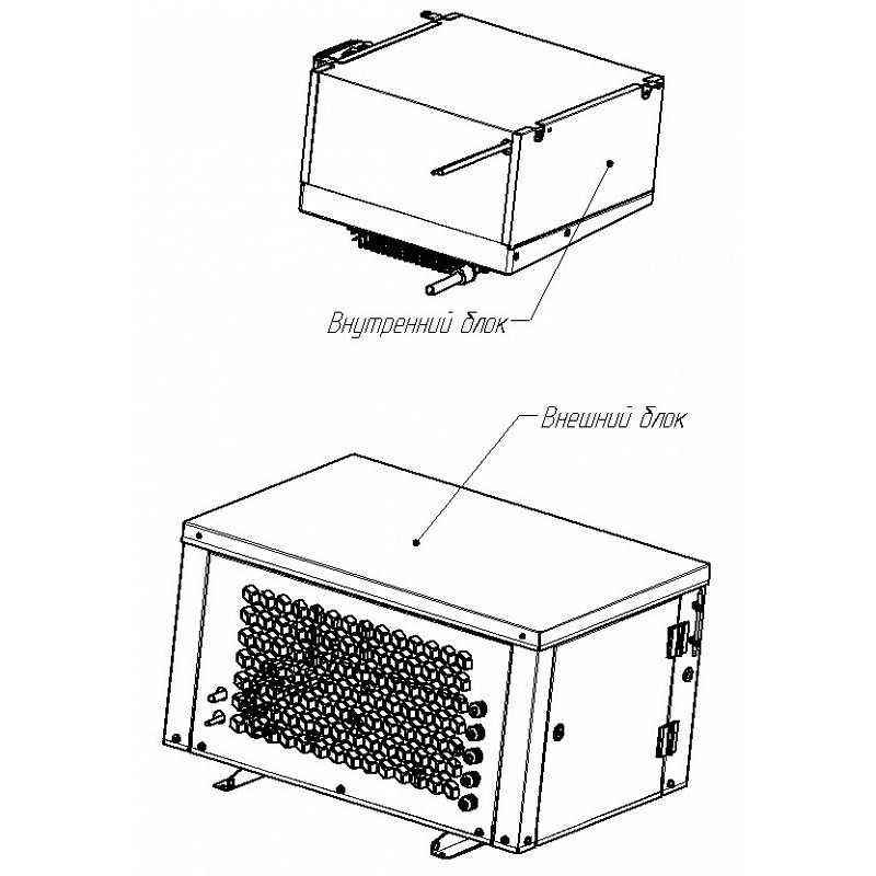 Конденсаторный блок и воздухоохладитель заправлены сухим азотом — дополнительная защита при транспортировке и монтаже.