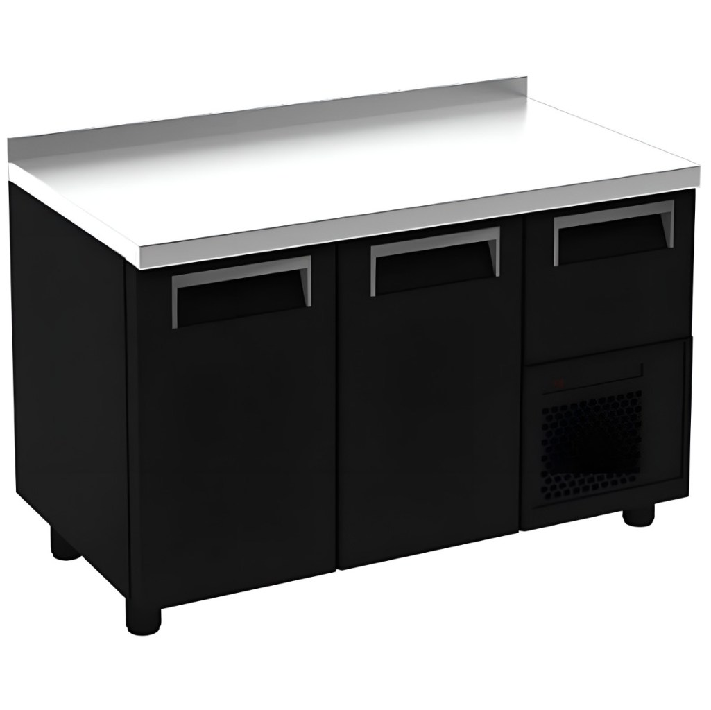 Carboma T57 M2-1 9005-29 корпус черный, с бортом, планка (BAR-250) — это функциональный и эргономичный холодильный стол для баров и кофеен, сочетающий надежность, удобство обслуживания и продуманный дизайн.