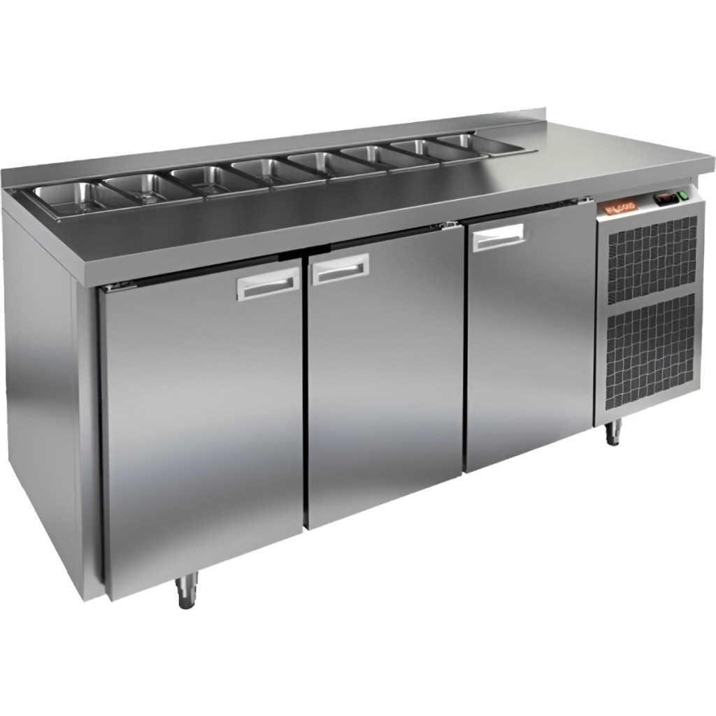 Каталог оборудования Холодильное оборудованиеСтолы охлаждаемыеСтолы холодильные для салатовСтол холодильный для салатов HiCold SL1-111GN (1/3) без крышки Стол холодильный для салатов HiCold SL1-111GN (1/3) без крышки Код товара: 064-517 Поделиться: WhatsAppTelegram СравнитьДобавить в КПВ избранное 0 163 612 ₽ В корзину 0 шт Под заказСамовывоз сегодня бесплатно Взять в кредит Купить в лизинг Получить консультацию в WhatsApp Описание Характеристики Отзывы 0 Инструкции 2 Стол холодильный для салатов HiCold SL1-111GN (1/3) без крышки предназначен для предприятий общественного питания и торговли. Он обеспечивает хранение и подготовку ингредиентов для пиццы, салатов и других блюд, а также охлаждение и кратковременное хранение скоропортящихся продуктов. Модель сочетает рабочую поверхность и холодильный объем, позволяя повару иметь все необходимые компоненты под рукой. Корпус и столешница выполнены из нержавеющей стали, обеспечивая надежность и долговечность. Особенности: Динамическая система охлаждения — равномерное распределение температуры внутри холодильного объема. Автоматическая оттайка — упрощает уход за оборудованием. Электронная панель управления — точная настройка температуры и режимов работы. 3 вместительные внутренние полки формата GN 1/1 — удобное хранение ингредиентов. Автоматические доводчики дверей с фиксатором открытого положения — комфорт и безопасность работы. Легкозаменяемые магнитные уплотнители — простота обслуживания. Открытая агрегатная часть — облегчает доступ для обслуживания. Регулируемые по высоте ножки — адаптация к рабочей поверхности. Столешница с бортом, толщина столешницы и теплоизоляции 50 мм — надежная защита и удобство работы. Размер полки: 530×325мм (GN 1/1) Максимальная глубина гастроемкостей: 100 мм HiCold SL1-111GN (1/3) без крышки — многофункциональный и надежный стол для профессиональной кухни. Обеспечивает удобство работы, эффективное охлаждение и безопасное хранение продуктов. Мобильная модификация с колёсами позволяет легко перемещать стол, что делает его идеальным для ресторанов, кафе и пиццерий.Изображение товара, представленного на фото, может отличаться от его фактического вида. Показать все Габаритные размеры1835×700×850 ммДиапазон рабочей температурыот +2 до +10 °CРасположение агрегатаБоковое Материал столешницыНержавеющая Тип столаС дверьми Тип двериГлухая Объём505 лКоличество дверей3 штТип гастроемкостейGN 1/3 Размер полки530×325 ммНапряжение220 ВМощность0,46 кВтТип охлажденияДинамический Тип оттайкиАвтоматическая СтолешницаС бортом Вес нетто120 кгВес брутто183 кгБрендHicold Оставить отзыв Еще никто не оставил отзыв на этот товар Паспорт на HICOLD SL1-111GN.pdfДекларация о соответствии.pdf Ранее просмотрено Под заказ 294 562 ₽ Стол холодильный для салатов HiCold SLE1-2222GN (1/3) с крышкой Под заказ 168 382 ₽ Стол холодильный для салатов HiCold SLE2-1111GN (1/6) О без крышки Под заказ 208 792 ₽ Стол холодильный для салатов HiCold SLE1-122GN (1/3) О с крышкой Под заказ 123 742 ₽ Стол холодильный для салатов HiCold SLE1-11SN (1/3) О с крышкой