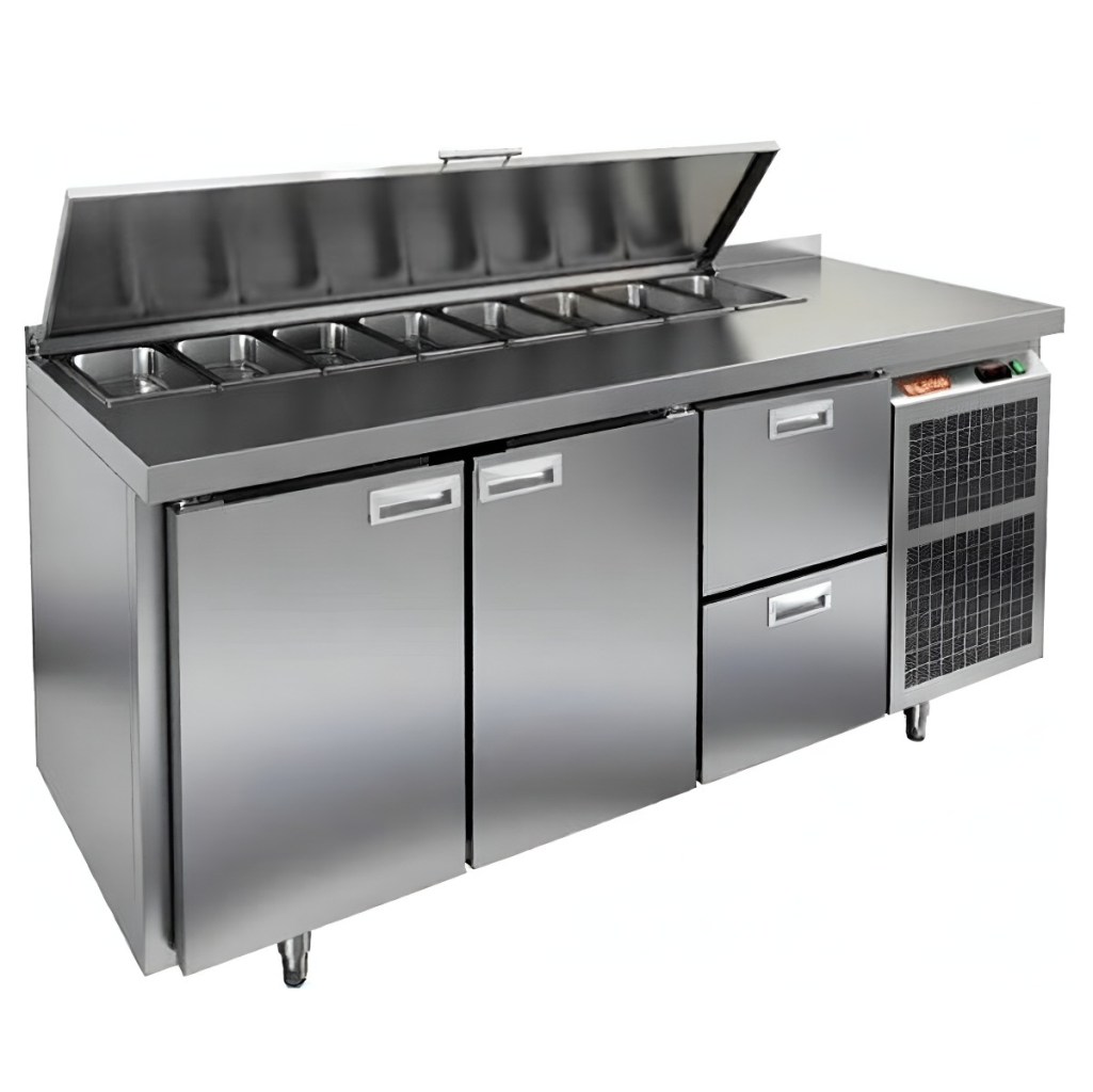 Каталог оборудования Холодильное оборудованиеСтолы охлаждаемыеСтолы холодильные для салатовСтол холодильный для салатов HiCold SL1-112GN (1/3) с крышкой Стол холодильный для салатов HiCold SL1-112GN (1/3) с крышкой Код товара: 064-841 Поделиться: WhatsAppTelegram СравнитьДобавить в КПВ избранное 0 198 892 ₽ В корзину 0 шт Под заказСамовывоз сегодня бесплатно Взять в кредит Купить в лизинг Получить консультацию в WhatsApp Описание Характеристики Отзывы 0 Инструкции 2 Стол холодильный для салатов HiCold SL1-112GN (1/3) предназначен для использования на предприятиях общественного питания и торговли. Он объединяет рабочую поверхность и охлаждаемый отсек, что делает его удобным решением для хранения, охлаждения и подготовки ингредиентов при приготовлении салатов, пиццы и других блюд. Такая конструкция позволяет повару работать быстрее и эффективнее, так как все необходимые продукты находятся под рукой. Корпус и столешница выполнены из прочной нержавеющей стали, устойчивой к коррозии и легко поддающейся санитарной обработке. Металлическая крышка защищает продукты от загрязнений и сохраняет их свежесть. Особенности модели: Электронная панель управления — точная настройка температурного режима. 2 глухие двери — удобный доступ к холодильному отсеку. 2 выдвижных ящика — быстрое размещение и замена продуктов. Вместимость салат-бара — до 8 гастроемкостей глубиной до 100 мм. Автоматические доводчики дверей с фиксацией в открытом положении. Легкозаменяемые магнитные уплотнители — надежная герметичность. Открытая агрегатная часть — быстрый доступ для обслуживания. Регулируемые по высоте ножки — устойчивость даже на неровном полу. Толщина столешницы, борта и теплоизоляции — 50 мм, что обеспечивает прочность и энергоэффективность конструкции. HiCold SL1-112GN (1/3) — практичное и удобное решение для профессиональной кухни, обеспечивающее удобную подготовку и хранение ингредиентов.Изображение товара, представленного на фото, может отличаться от его фактического вида. Показать все Габаритные размеры1835×700×850 ммДиапазон рабочей температурыот +2 до +10 °CРасположение агрегатаБоковое Материал столешницыНержавеющая Тип столаС дверьми и ящиками Тип двериГлухая Объём505 лКоличество дверей2 штТип гастроемкостейGN 1/3 Количество ящиков2 штРазмер полки530×325 ммНапряжение220 ВМощность0,46 кВтТип охлажденияДинамическое Тип оттайкиАвтоматическая СтолешницаС бортом Вес нетто120 кгВес брутто140 кгБрендHicold Оставить отзыв Еще никто не оставил отзыв на этот товар Паспорт на HICOLD SL1-112GN.pdfДекларация о соответствии.pdf Ранее просмотрено Под заказ 140 482 ₽ Стол холодильный для салатов HiCold SL2-11GN (1/6) без крышки Под заказ 235 161 ₽ Стол холодильный для салатов HiCold SLE1-222GN (1/3) без крышки