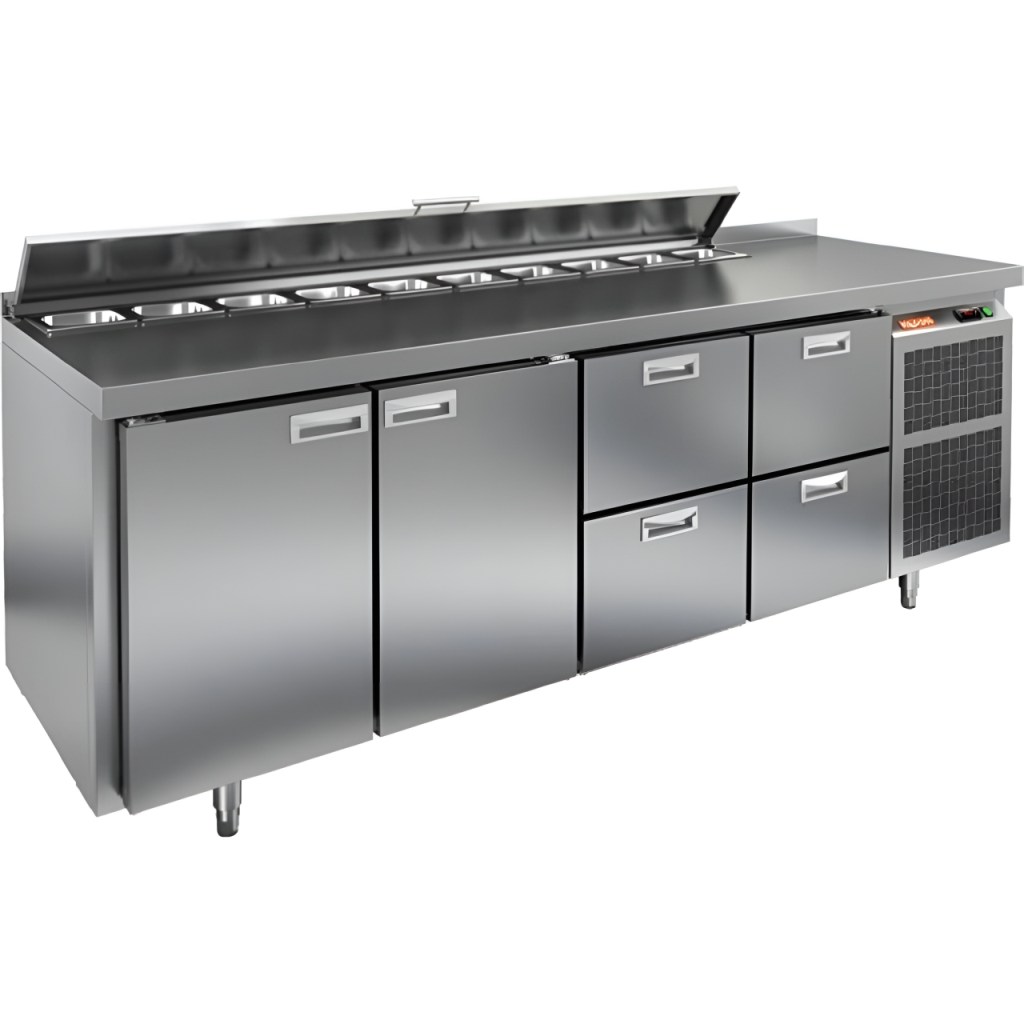 Каталог оборудования Холодильное оборудованиеСтолы охлаждаемыеСтолы холодильные для салатовСтол холодильный для салатов HiCold SL1-332GN (1/3) с крышкой Стол холодильный для салатов HiCold SL1-332GN (1/3) с крышкой Код товара: 064-851 Поделиться: WhatsAppTelegram СравнитьДобавить в КПВ избранное 0 290 692 ₽ В корзину 0 шт Под заказСамовывоз сегодня бесплатно Взять в кредит Купить в лизинг Получить консультацию в WhatsApp Описание Характеристики Отзывы 0 Инструкции 1 Стол холодильный для салатов HiCold SL1-332GN (1/3) предназначен для использования на предприятиях общественного питания и торговли. Он объединяет рабочую поверхность и охлаждаемый отсек, что делает его удобным решением для хранения, охлаждения и подготовки ингредиентов при приготовлении салатов, пиццы и других блюд. Такая конструкция позволяет повару работать быстрее и эффективнее, так как все необходимые продукты находятся под рукой. Корпус и столешница выполнены из прочной нержавеющей стали, устойчивой к коррозии и легко поддающейся санитарной обработке. Металлическая крышка защищает продукты от загрязнений и сохраняет их свежесть. Особенности модели: Электронная панель управления — точная настройка температурного режима. 8 выдвижных ящика — быстрое размещение и замена продуктов. Вместимость салат-бара — до 8 гастроемкостей глубиной до 100 мм. Автоматические доводчики — комфорт при загрузке/выгрузке. Легкозаменяемые магнитные уплотнители — надежная герметичность. Открытая агрегатная часть — быстрый доступ для обслуживания. Регулируемые по высоте ножки — устойчивость даже на неровном полу. Толщина столешницы, борта и теплоизоляции — 50 мм, что обеспечивает прочность и энергоэффективность конструкции. HiCold SL1-332GN (1/3) — практичное и удобное решение для профессиональной кухни, обеспечивающее удобную подготовку и хранение ингредиентов.Изображение товара, представленного на фото, может отличаться от его фактического вида. Показать все Габаритные размеры1835×700×850 ммДиапазон рабочей температурыот +2 до +10 °CРасположение агрегатаБоковое Материал столешницыНержавеющая Тип столаС дверьми и ящиками Тип двериГлухая Объём505 лКоличество дверей2 штТип гастроемкостейGN 1/3 Количество ящиков6 штРазмер полки530×325 ммНапряжение220 ВМощность0,46 кВтТип охлажденияДинамическое Тип оттайкиАвтоматическая СтолешницаС бортом Габариты в упаковке2000×850×1000 ммВес нетто120 кгВес брутто140 кгБрендHicold Оставить отзыв Еще никто не оставил отзыв на этот товар Декларация о соответствии.pdf Ранее просмотрено Под заказ 201 682 ₽ Стол холодильный для салатов HiCold SL2-22GN (1/6) без крышки Под заказ 121 491 ₽ Стол холодильный для салатов HiCold SLE2-11GN (1/6) O без крышки Под заказ 238 582 ₽ Стол холодильный для салатов HiCold SLE2-222SN (1/6) О с крышкой Под заказ 198 892 ₽ Стол холодильный для салатов HiCold SL1-112GN (1/3) с крышкой Под заказ 140 482 ₽ Стол холодильный для салатов HiCold SL2-11GN (1/6) без крышки Под заказ 235 161 ₽ Стол холодильный для салатов HiCold SLE1-222GN (1/3) без крышки