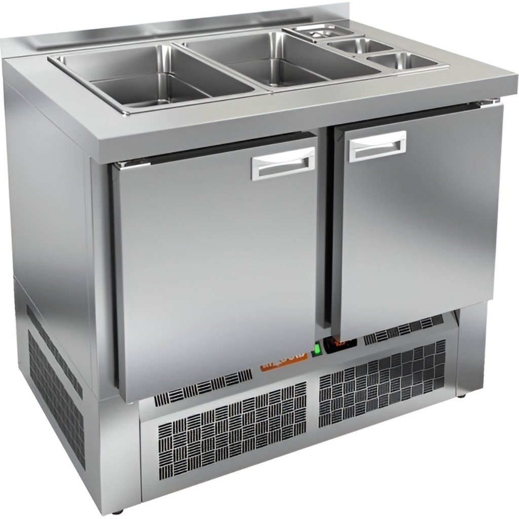 Каталог оборудования Холодильное оборудованиеСтолы охлаждаемыеСтолы холодильные для салатовСтол холодильный для салатов HiCold SLE3-11GN без крышки Стол холодильный для салатов HiCold SLE3-11GN без крышки Код товара: 064-935 Поделиться: WhatsAppTelegram СравнитьДобавить в КПВ избранное 0 118 162 ₽ В корзину 0 шт Под заказСамовывоз сегодня бесплатно Взять в кредит Купить в лизинг Получить консультацию в WhatsApp Описание Характеристики Отзывы 0 Инструкции 2 Стол холодильный для салатов HiCold SLE3-11GN без крышки предназначен для охлаждения и кратковременного хранения продуктов, используемых при приготовлении салатов, закусок, сэндвичей и других блюд. Он идеально подходит для предприятий общественного питания и торговли, где требуется удобный доступ к охлаждённым ингредиентам. Модель сочетает в себе рабочую поверхность и охлаждаемый объём, что обеспечивает эффективную организацию кухонного пространства. Корпус и столешница изготовлены из нержавеющей стали, что гарантирует долговечность конструкции, устойчивость к коррозии и соответствие санитарным нормам. Особенности модели: Электронная панель управления — обеспечивает точный контроль температуры Две полки формата GN 1/1 — для удобного размещения ингредиентов Салат-бар вмещает 2 GN 1/1 и 3 GN 1/6 — для организации набора продуктов Автоматические доводчики дверей с фиксацией открытого положения Магнитные уплотнители — легко заменяются при износе Открытая агрегатная часть — упрощает обслуживание оборудования Регулируемые ножки — для устойчивой установки на любой поверхности Глубина гастроемкостей — до 100 мм Толщина столешницы — 50 мм Толщина теплоизоляции — 50 мм HiCold SLE3-11GN без крышки — функциональное решение для профессиональной кухни, позволяющее хранить ингредиенты в охлаждённом состоянии и всегда иметь их под рукой во время приготовления блюд. Изображение товара, представленного на фото, может отличаться от его фактического вида. Показать все Габаритные размеры1000×700×1315 ммДиапазон рабочей температурыот +2 до +10 °CРасположение агрегатаНижнее Материал столешницыНержавеющая Тип столаС дверьми Тип двериГлухая Объём245 лКоличество дверей2 штТип гастроемкостейGN 1/1, GN 1/6 Размер полки530×325 ммНапряжение220 ВМощность0,15 кВтТип охлажденияДинамическое Тип оттайкиАвтоматическая СтолешницаС бортом Вес нетто95 кгВес брутто140 кгБрендHicold Оставить отзыв Еще никто не оставил отзыв на этот товар Паспорт на HICOLD SLE3-11GN.pdfДекларация о соответствии.pdf Ранее просмотрено Под заказ 139 852 ₽ Стол холодильный для салатов HiCold SLE3-111GN О без крышки Под заказ 208 432 ₽ Стол холодильный для салатов HiCold SLE2-122GN (1/6) с крышкой Под заказ 109 310 ₽ Стол холодильный для салатов Polair TMi2GNsal-G Под заказ 90 118 ₽ Дверь холодильная распашная двустворчатая СТ-РДД-2200*2200/80 Под заказ 140 661 ₽ Стол холодильный для салатов HiCold SLE3-11GN М без крышки Под заказ 96 021 ₽ Стол холодильный для салатов HiCold SLE3-1GN О без крышки Под заказ 143 361 ₽ Стол холодильный для салатов HiCold SLE1-111GN (1/3) без крышки