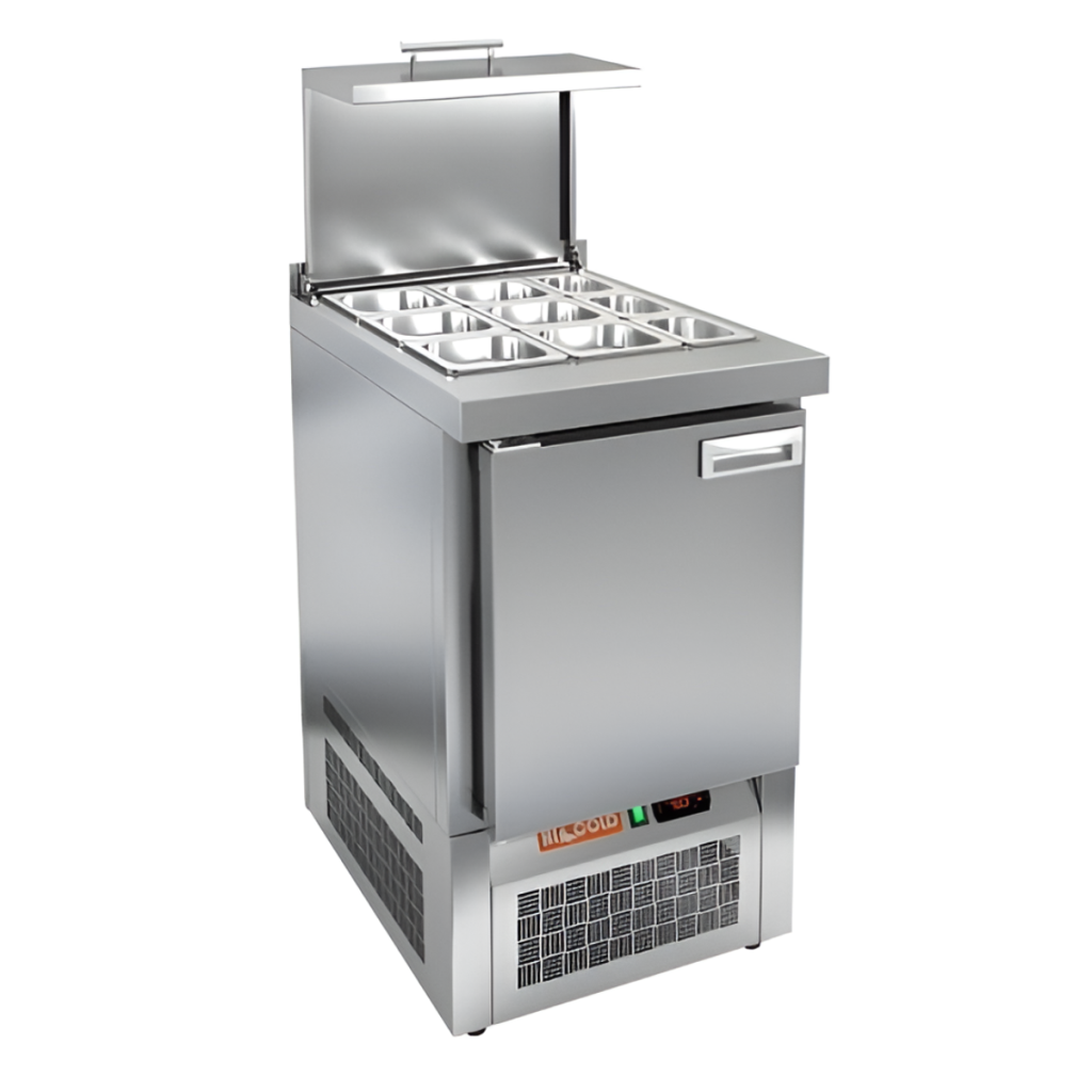 Каталог оборудования Холодильное оборудованиеСтолы охлаждаемыеСтолы холодильные для салатовСтол холодильный для салатов HiCold SLE3-1GN с крышкой Стол холодильный для салатов HiCold SLE3-1GN с крышкой Код товара: 064-942 Поделиться: WhatsAppTelegram СравнитьДобавить в КПВ избранное 0 100 432 ₽ В корзину 0 шт Под заказСамовывоз сегодня бесплатно Взять в кредит Купить в лизинг Получить консультацию в WhatsApp Описание Характеристики Отзывы 0 Инструкции 2 Стол холодильный для салатов HiCold SLE3-1GN с крышкой предназначен для охлаждения и кратковременного хранения ингредиентов, используемых при приготовлении салатов, закусок, сэндвичей и других блюд. Он широко применяется на предприятиях общественного питания и торговли. Модель объединяет в себе рабочую поверхность и охлаждаемый отсек, обеспечивая удобство, экономию места и быстрое взаимодействие с ингредиентами в процессе приготовления. Корпус и столешница изготовлены из нержавеющей стали, что гарантирует долговечность конструкции, устойчивость к коррозии и соответствие санитарным нормам. Металлическая крышка защищает продукты от загрязнений и сохраняет их свежесть. Особенности модели: Электронная панель управления — для точной настройки температуры Вместительная внутренняя полка формата GN 1/1 — для хранения различных продуктов Вместимость салат-бара: 6 гастроемкостей GN 1/6 и 3 GN 1/9 Поддержка гастроемкостей глубиной до 100 мм Автоматические доводчики дверей с фиксацией открытого положения Легкозаменяемые магнитные уплотнители — поддерживают герметичность Открытая агрегатная часть — упрощает техническое обслуживание Регулируемые по высоте ножки — для устойчивой установки Столешница толщиной 50 мм Борт высотой 50 мм Эффективная теплоизоляция — 50 мм HiCold SLE3-1GN с крышкой — компактный и функциональный салатный стол, который сочетает охлаждение и удобное рабочее пространство. Подходит для профессиональных кухонь, обеспечивая быстрый доступ к ингредиентам и оптимальные условия их хранения.Изображение товара, представленного на фото, может отличаться от его фактического вида. Показать все Габаритные размеры565×700×850 ммДиапазон рабочей температурыот +2 до +10 °CРасположение агрегатаНижнее Материал столешницыНержавеющая Тип столаС дверьми Тип двериГлухая Объём110 лКоличество дверей1 штТип гастроемкостейGN 1/9, GN 1/6 Размер полки530×325 ммНапряжение220 ВМощность0,15 кВтТип охлажденияДинамическое Тип оттайкиАвтоматическая СтолешницаС бортом Вес нетто58 кгВес брутто95 кгБрендHicold Оставить отзыв Еще никто не оставил отзыв на этот товар Паспорт на HICOLD SLE3-1GN.pdfДекларация о соответствии.pdf Ранее просмотрено Под заказ 165 772 ₽ Стол холодильный для салатов HiCold SL2-11GN (1/6) О М Под заказ 122 523 ₽ Стол холодильный среднетемпературный Abat СХС-70Н столешница 202 без борта (ящик 1/2) Под заказ 13 768 ₽ Ванна моечная МХМ М-1-0,3-0,53/1,01 (AISI 430, t=0,6)