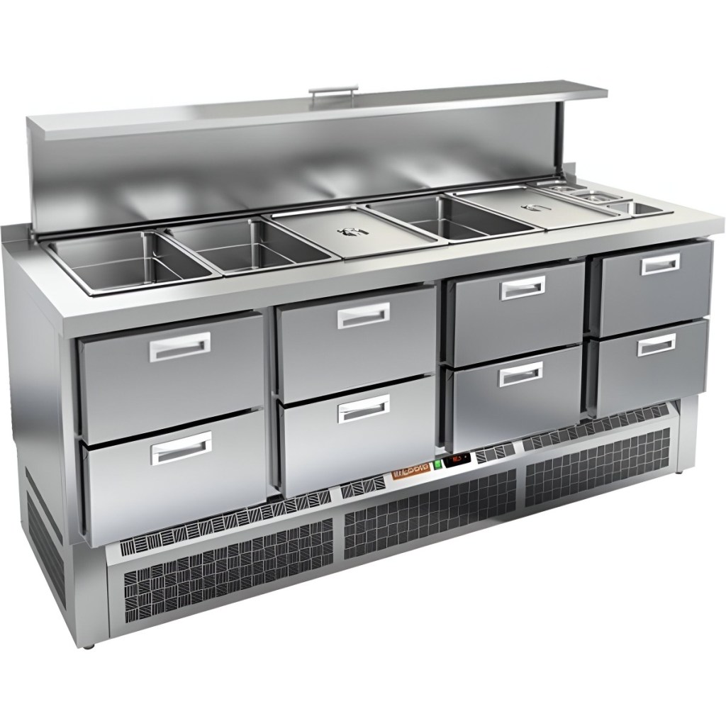Каталог оборудования Холодильное оборудованиеСтолы охлаждаемыеСтолы холодильные для салатовСтол холодильный для салатов HiCold SLE3-2222GN с крышкой Стол холодильный для салатов HiCold SLE3-2222GN с крышкой Код товара: 064-947 Поделиться: WhatsAppTelegram СравнитьДобавить в КПВ избранное 0 311 482 ₽ В корзину 0 шт Под заказСамовывоз сегодня бесплатно Взять в кредит Купить в лизинг Получить консультацию в WhatsApp Описание Характеристики Отзывы 0 Инструкции 2 Стол холодильный для салатов HiCold SLE3-2222GN с крышкой предназначен для использования на предприятиях общественного питания и торговли. Он сочетает в себе функции охлаждения и хранения ингредиентов, используемых при приготовлении салатов, закусок, сэндвичей и других блюд, требующих кратковременного поддержания температуры. Модель обеспечивает удобный доступ к продуктам и позволяет повару работать максимально эффективно. Корпус и столешница изготовлены из нержавеющей стали, что гарантирует долговечность конструкции, устойчивость к коррозии и соответствие санитарным нормам. Металлическая крышка защищает продукты от загрязнений и сохраняет их свежесть. Особенности модели: Электронная панель управления позволяет точно настраивать температурный режим 8 выдвижных ящиков обеспечивают удобное хранение ингредиентов и упрощают организацию рабочего пространства Вместимость салат-бара — 5 гастроемкостей формата GN 1/1 и 3 гастроемкости формата GN 1/6 Поддерживается использование гастроемкостей глубиной до 100 мм Двери оснащены автоматическими доводчиками с фиксацией в открытом положении Легкозаменяемые магнитные уплотнители обеспечивают герметичность и простоту обслуживания Открытая агрегатная часть упрощает доступ для сервисного обслуживания Регулируемые по высоте ножки позволяют адаптировать стол под любую рабочую поверхность Толщина столешницы и теплоизоляции составляет 50 мм, что гарантирует прочность и энергоэффективность Наличие борта повышает гигиеничность работы и облегчает поддержание чистоты на кухне. HiCold SLE3-2222GN с крышкой — это надёжный и практичный салатный стол, который сочетает в себе охлаждаемый отсек и удобную рабочую зону. Модель идеально подходит для интенсивной эксплуатации в профессиональных кухнях, обеспечивая быстрое обслуживание и надёжное хранение ингредиентов.Изображение товара, представленного на фото, может отличаться от его фактического вида. Показать все Габаритные размеры1970×700×1055 ммДиапазон рабочей температурыот +2 до +10 °CРасположение агрегатаНижнее Материал столешницыНержавеющая Тип столаС ящиками Объём505 лТип гастроемкостейGN 1/1, GN 1/6 Количество ящиков8 штНапряжение220 ВМощность0,46 кВтТип охлажденияДинамическое Тип оттайкиАвтоматическая СтолешницаС бортом Габариты в упаковке2200×850×1080 ммВес нетто140 кгВес брутто195 кгБрендHicold Оставить отзыв Еще никто не оставил отзыв на этот товар Паспорт на HICOLD SLE3-2222GN.pdfДекларация о соответствии.pdf Ранее просмотрено Под заказ 146 782 ₽ Стол холодильный для салатов HiCold SLE2-111SN (1/6) О с крышкой Под заказ 142 912 ₽ Стол холодильный для салатов HiCold SLE1-111SN (1/3) без крышки Под заказ 159 742 ₽ Стол холодильный для салатов HiCold SLE1-111GN (1/3) 3 замок Под заказ 15 990 ₽ Ванна моечная с бортом МХМ МБ-2-0,3-0,53/1,01 (AISI 430, t=0,6) Под заказ 174 051 ₽ Стол холодильный для салатов HiCold SLE3-111GN высокое стекло Под заказ 146 332 ₽ Стол холодильный для салатов HiCold SLE2-11GN (1/6) М с крышкой 
