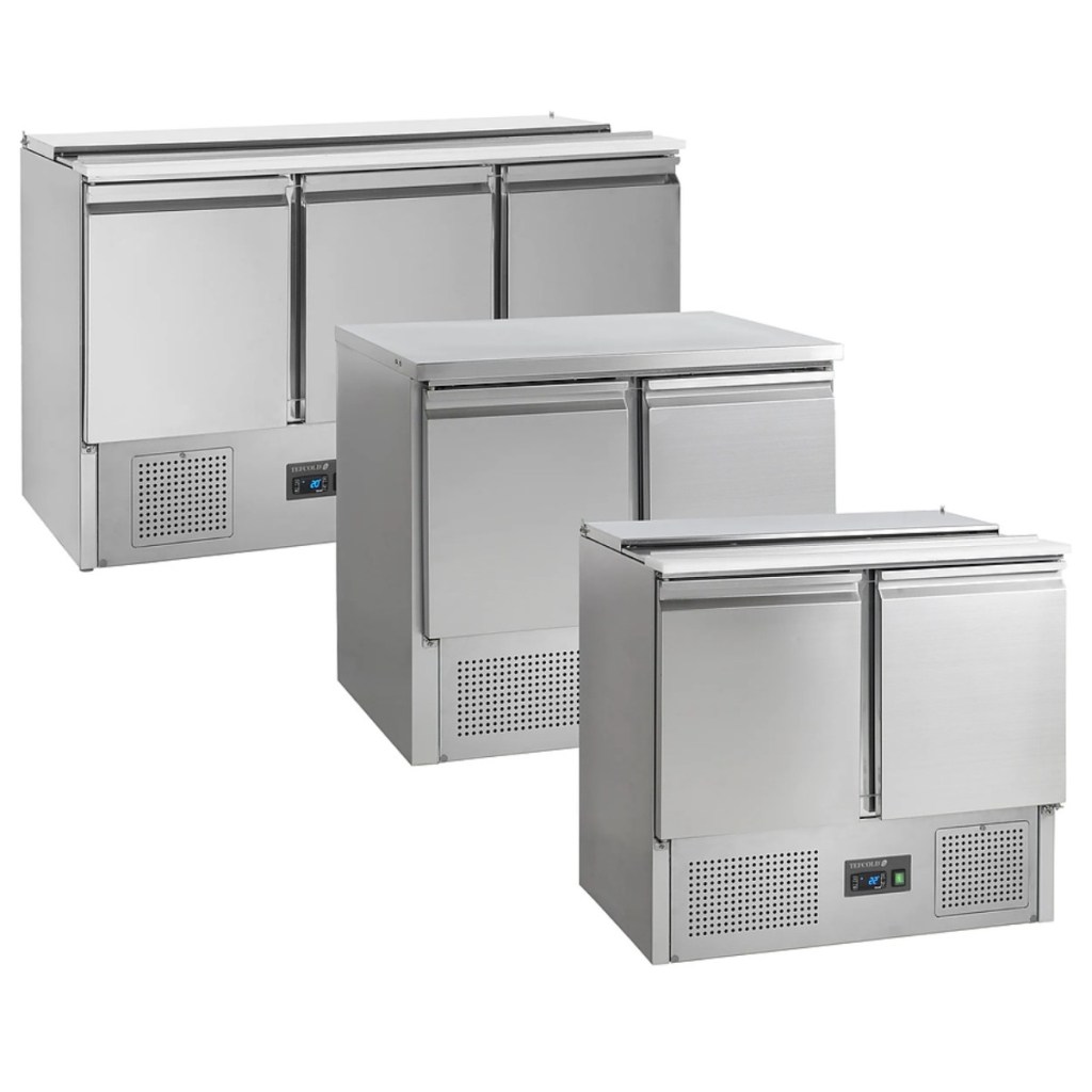 Каталог оборудования Холодильное оборудованиеСтолы охлаждаемыеСтолы холодильные для салатовСтол холодильный для салатов TEFCOLD SA910 Стол холодильный для салатов TEFCOLD SA910 Код товара: 010-357 Поделиться: WhatsAppTelegram СравнитьДобавить в КПВ избранное 0 94 892 ₽ В корзину 0 шт В наличииСамовывоз сегодня бесплатно Взять в кредит Купить в лизинг Получить консультацию в WhatsApp Описание Характеристики Отзывы 0 Стол холодильный для салатов TEFCOLD SA910 — профессиональное оборудование для обработки ингредиентов, приготовления салатов, охлаждения и кратковременного хранения продуктов на предприятиях общественного питания и торговли. Корпус и внутренняя отделка выполнены из нержавеющей стали AISI 304, что обеспечивает долговечность и простоту ухода. Особенности модели: Статическое охлаждение с вентилятором — равномерное поддержание температуры Автоматическое размораживание — поддержка стабильного режима без образования наледи Электронный термостат и градусник — точный контроль температуры Хладагент R600a, подзарядка — 0,068 кг Рабочая поверхность для нарезки и открытый верх под гастроёмкости 2 полки для удобной организации внутреннего пространства Регулируемые по высоте ножки — устойчивость на неровных поверхностях Климатический класс 4 — стабильная работа при температуре до +30 °C Полезный объём: 230 л Размеры полки: 530×325 мм Внутренние размеры камеры: 830×515×500 мм Энергопотребление: 3,12 кВт/сутки Уровень шума: 42 дБ TEFCOLD SA910 — компактный и надёжный холодильный стол для профессиональных кухонь и предприятий общественного питания. Он сочетает рабочую поверхность для нарезки, вместительное охлаждаемое пространство и эффективное управление температурой, обеспечивая удобство работы и сохранность продуктов.Изображение товара, представленного на фото, может отличаться от его фактического вида. Показать все Габаритные размеры900×700×890 ммДиапазон рабочей температурыот +2 до +10 °CРасположение агрегатаНижнее Материал столешницыНержавеющая Тип столаС дверьми Тип двериГлухая Общий объем260 лПолезный объем230 лКоличество дверей2 штРазмер полки530×325 ммНапряжение230 ВМощность0,15 кВтТип охлажденияСтатический Тип оттайкиАвтоматическая ХладагентR600a Габариты в упаковке980×770×1040 ммВес нетто72 кгВес брутто82 кгБрендTefcold Оставить отзыв Еще никто не оставил отзыв на этот товар Похожие товары Перейти в каталог Под заказ 110 947 ₽ Стол холодильный среднетемпературный Polair TD2-G Под заказ 64 485 ₽ Стол холодильный среднетемпературный Cooleq S901 Под заказ 85 405 ₽ Стол холодильный среднетемпературный Cooleq SNACK2100TN/600 В наличии 65 229 ₽ Стол холодильный среднетемпературный HURAKAN HKN-GNL2TN С этим товаром покупают В наличии 189 749 ₽ Шкаф морозильный Polair CB114-S В наличии 64 467 ₽ Витрина холодильная для ингредиентов HICOLD VRTG 1390 1/3 Ранее просмотрено Под заказ 23 832 ₽ Минибар TEFCOLD TM42 черный