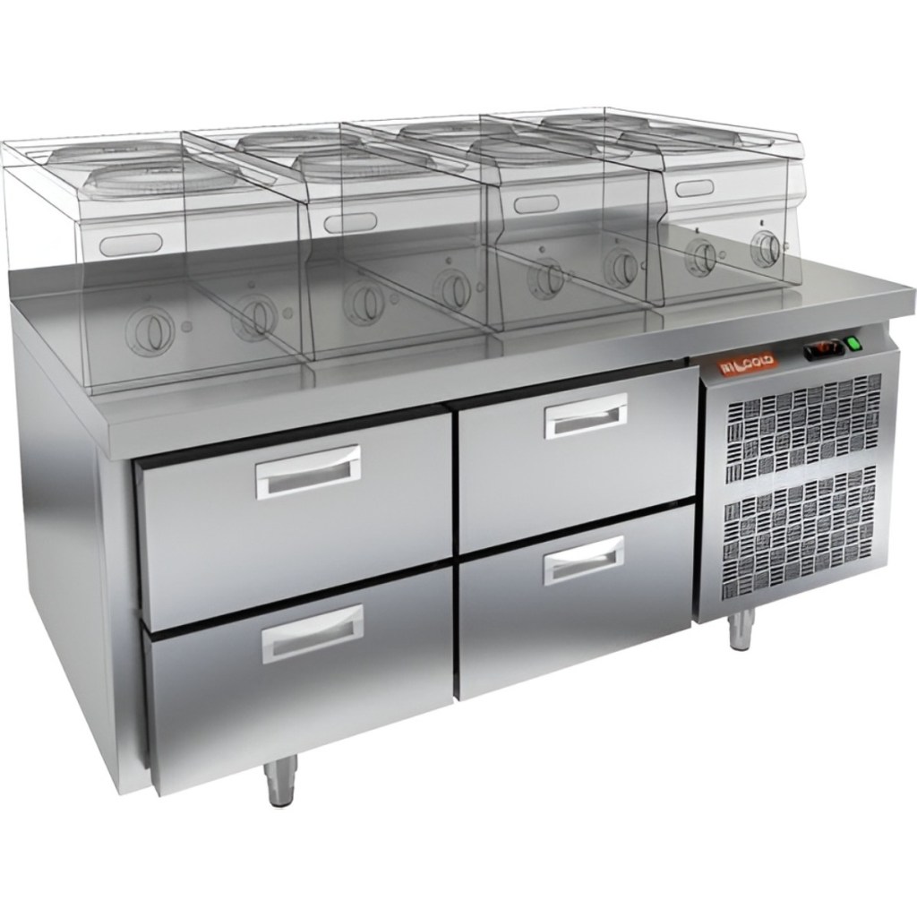 Каталог оборудования Холодильное оборудованиеСтолы охлаждаемыеСтолы холодильные под тепловое оборудованиеСтол охлаждаемый HiCold GN 22/TN LT под тепловое оборудование, без столещницы Стол охлаждаемый HiCold GN 22/TN LT под тепловое оборудование, без столещницы Код товара: 065-422 Поделиться: WhatsAppTelegram СравнитьДобавить в КПВ избранное 0 170 272 ₽ В корзину 0 шт Под заказСамовывоз сегодня бесплатно Взять в кредит Купить в лизинг Получить консультацию в WhatsApp Описание Характеристики Отзывы 0 Инструкции 2 Стол охлаждаемый HiCold GN 22/TN LT под тепловое оборудование, без столещницы предназначен для обработки ингредиентов и временного хранения скоропортящихся продуктов и напитков на предприятиях общественного питания и торговли. Устройство совмещает функции рабочей поверхности и холодильной камеры. Стол рассчитан на установку теплового оборудования на отдельной рабочей поверхности. Конструкция обеспечивает достаточную жесткость и устойчивость, что позволяет рационально использовать пространство и повышает эффективность работы на кухне. Внимание! На изображении показана аналогичная модель в комплектации со столешницей. Особенности: 4 выдвижных ящика — быстрое и удобное хранение ингредиентов. Автоматические доводчики дверей с фиксатором открытого положения повышают эргономику и способствуют сохранению холода. Легкозаменяемые магнитные уплотнители обеспечивают плотное прилегание дверей и лёгкость в обслуживании. Открытая агрегатная часть упрощает доступ к компрессору при техническом обслуживании. Регулируемые по высоте ножки позволяют установить стол на неровной поверхности. Рабочая поверхность без столешницы — возможность установки собственной рабочей поверхности или оборудования по потребностям кухни. Толщина теплоизоляции — 50 мм способствует энергоэффективности и стабильному температурному режиму. HiCold GN 22/TN LT без столещницы — это надёжный и практичный холодильный стол с выдвижными ящиками, идеально подходящий для профессиональных кухонь. Его конструкция создана для обеспечения удобства, гигиеничности и эффективности в условиях интенсивной эксплуатации.Изображение товара, представленного на фото, может отличаться от его фактического вида. Показать все Габаритные размеры1390×700×675 ммДиапазон рабочей температурыот -2 до +10 °CМатериал столешницыБез столешницы Расположение агрегатаБоковое Объём255 лТип столаС ящиками Количество ящиков4 штНапряжение220 ВМощность0,22 кВтТип охлажденияДинамический Тип оттайкиАвтоматическая СтолешницаС бортом Габариты в упаковке1550×850×850 ммВес нетто80 кгВес брутто120 кгБрендHicold Оставить отзыв Еще никто не оставил отзыв на этот товар Паспорт на HICOLD GN 22TN LT.pdfДекларация о соответствии.pdf Похожие товары Перейти в каталог В наличии 77 661 ₽ Стол холодильный среднетемпературный HiCold GN 11/TN W Под заказ 125 670 ₽ Стол холодильный среднетемпературный Abat СХС-70-01 с бортом (дверь, дверь) С этим товаром покупают В наличии 201 690 ₽ Шкаф морозильный Полюс Carboma F1400 В наличии 195 030 ₽ Плита индукционная Аbat КИП-47Н Ранее просмотрено Под заказ 169 911 ₽ Стол охлаждаемый HiCold SN 22/TN LT под тепловое оборудование, без столещницы