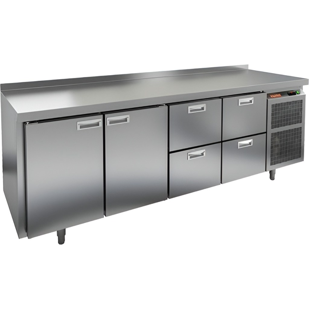 Каталог оборудования Холодильное оборудованиеСтолы охлаждаемыеСтолы холодильные среднетемпературныеСтол холодильный среднетемпературный HiCold GN 1122/TN Стол холодильный среднетемпературный HiCold GN 1122/TN Код товара: 001-340 Поделиться: WhatsAppTelegram СравнитьДобавить в КПВ избранное 0 228 591 ₽ В корзину 0 шт Под заказСамовывоз сегодня бесплатно Взять в кредит Купить в лизинг Получить консультацию в WhatsApp Описание Характеристики Отзывы 0 Инструкции 2 Стол холодильный среднетемпературный HiCold GN 1122/TN предназначен для хранения продуктов и подготовки ингредиентов в заведениях общественного питания и торговли. Удобная электронная панель управления, прочный корпус и продуманная конструкция делают эту модель оптимальным выбором для профессиональной кухни. В комплект входят 2 полки размером 530×325 мм. Ключевые особенности: 2 распашные двери и 4 выдвижные секции — рациональная организация внутреннего пространства и быстрый доступ к содержимому. Электронная панель управления — интуитивное управление температурой. Автоматические доводчики дверей с фиксаторами открытого положения — удобно при частом использовании. Легкозаменяемые магнитные уплотнители — надёжная герметизация и лёгкое техническое обслуживание. Регулируемые по высоте ножки — устойчивость на любой поверхности. Корпус и столешница из нержавеющей стали — прочность, долговечность и соответствие санитарным требованиям. Толщина столешницы, борта и теплоизоляции — 50 мм — отличная теплоизоляция и прочность. Устойчив к внешним условиям при температуре окружающей среды от 12 до 37 °C. HiCold GN 1122/TN — это надёжный и функциональный холодильный стол, разработанный для интенсивной профессиональной эксплуатации. Удачное сочетание дверей и выдвижных секций делает его универсальным решением для хранения различных категорий продуктов, обеспечивая удобство работы и соблюдение температурного режима. Изображение товара, представленного на фото, может отличаться от его фактического вида. Показать все Габаритные размеры2280×700×850 ммДиапазон рабочей температурыот -2 до +10 °CРасположение агрегатаБоковое Материал столешницыНержавеющая Тип столаС дверьми и ящиками Тип двериГлухая Объём660 лКоличество дверей2 штКоличество полок2 штКоличество ящиков4 штРазмер полки530×325 ммНапряжение220 ВМощность0,48 кВтТип охлажденияДинамический Тип оттайкиАвтоматическая СтолешницаС бортом Вес нетто214 кгВес брутто238 кгБрендHicoldВсе холодильные столы HicoldВсе оцинкованные холодильные столы Оставить отзыв Еще никто не оставил отзыв на этот товар Паспорт на HICOLD GN 1122TN.pdfДекларация о соответствии.pdf Похожие товары Перейти в каталог Под заказ 197 991 ₽ Стол холодильный среднетемпературный HiCold GNG 1111 HT В наличии 139 401 ₽ Стол холодильный среднетемпературный HiCold GN 1111 BR2 TN В наличии 113 121 ₽ Стол холодильный среднетемпературный HiCold GN 1111/TN W Под заказ 119 067 ₽ Стол холодильный среднетемпературный Polair TM4GN-GС С этим товаром покупают Под заказ 130 257 ₽ Шкаф комбинированный Carboma RF 700 Под заказ 68 464 ₽ Витрина холодильная для ингредиентов HICOLD VRX 1600 1/3