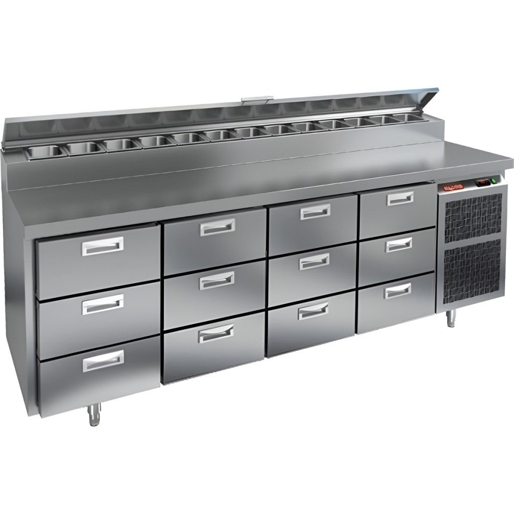 Каталог оборудования Холодильное оборудованиеСтолы охлаждаемыеСтолы холодильные для пиццыСтол холодильный для пиццы HiCold PZ2-3333GN (1/6) Стол холодильный для пиццы HiCold PZ2-3333GN (1/6) Код товара: 064-764 Поделиться: WhatsAppTelegram СравнитьДобавить в КПВ избранное 0 434 242 ₽ В корзину 0 шт Под заказСамовывоз сегодня бесплатно Взять в кредит Купить в лизинг Получить консультацию в WhatsApp Описание Характеристики Отзывы 0 Инструкции 1 Стол холодильный для пиццы HiCold PZ2-3333GN (1/6) камень предназначен для кухонь и предприятий общественного питания. Он используется для раскатки теста, подготовки ингредиентов для пиццы, салатов и других блюд, а также для охлаждения и кратковременного хранения скоропортящихся продуктов. Модель совмещает гранитную рабочую поверхность и охлаждаемый отсек с 12 выдвижными ящиками, обеспечивая удобный доступ к ингредиентам и эффективное хранение без дверей. Особенности: Динамическая система охлаждения для равномерного поддержания температуры Автоматическая оттайка для удобного обслуживания Электронная панель управления для точной настройки параметров Вместительная внутренняя полка формата GN 1/1 (размер 530×325 мм) 12 выдвижных ящиков для хранения ингредиентов Легкозаменяемые магнитные уплотнители для герметичности Открытая агрегатная часть для легкого доступа к компонентам Регулируемые по высоте ножки для устойчивости Гранитная столешница глубиной 486 мм и толщиной 50 мм — устойчива к повреждениям, легко моется и гигиенична Толщина теплоизоляции: 50 мм Максимальная глубина гастроемкостей: 100 мм Вместимость салат-бара: 13 гастроемкости Стол холодильный HiCold PZ2-3333GN (1/6) камень — это надежное и удобное решение для профессиональной кухни. Он обеспечивает легкий доступ к ингредиентам, упрощает хранение и подготовку продуктов и полностью соответствует стандартам предприятий общественного питания.Изображение товара, представленного на фото, может отличаться от его фактического вида. Показать все Габаритные размеры2280×700×1000 ммДиапазон рабочей температурыот +2 до +10 °CРасположение агрегатаБоковое Материал столешницыНержавеющая Тип столаС ящиками Объём660 лТип гастроемкостейGN 1/6 Количество ящиков12 штРазмер полки530×325 ммНапряжение220 ВМощность0,5 кВтТип охлажденияДинамическое Тип оттайкиАвтоматическая Габариты в упаковке2420×850×1080 ммВес нетто208 кгВес брутто240 кгБрендHicoldВсе холодильные столы для пиццы HicoldВсе нержавеющие холодильные столы для пиццы Оставить отзыв Еще никто не оставил отзыв на этот товар Декларация о соответствии.pdf Ранее просмотрено Под заказ 250 822 ₽ Стол холодильный для пиццы HiCold PZE1-1112/GN (1/3)