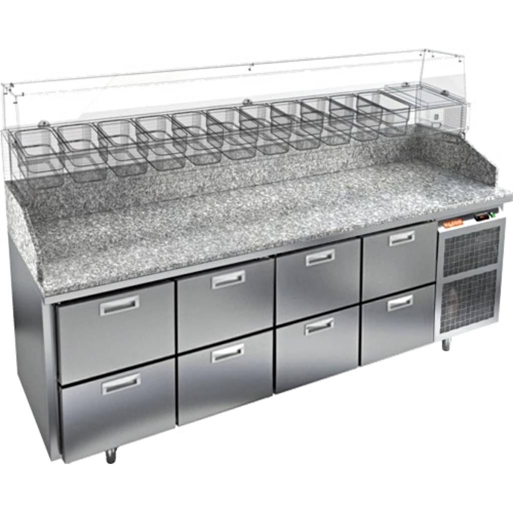 Каталог оборудования Холодильное оборудованиеСтолы охлаждаемыеСтолы холодильные для пиццыСтол холодильный для пиццы HiCold PZ3-2222/GN камень Стол холодильный для пиццы HiCold PZ3-2222/GN камень Код товара: 065-016 Поделиться: WhatsAppTelegram СравнитьДобавить в КПВ избранное 0 406 521 ₽ В корзину 0 шт Под заказСамовывоз сегодня бесплатно Взять в кредит Купить в лизинг Получить консультацию в WhatsApp Описание Характеристики Отзывы 0 Стол холодильный для пиццы HiCold PZE3-2222/GN камень предназначен для использования в пиццериях, кафе, магазинах и ресторанах. Он идеально подходит для раскатки теста, подготовки ингредиентов и кратковременного хранения скоропортящихся продуктов. Витрина приобретается отдельно. Стол сочетает корпус из нержавеющей стали и гранитную столешницу, которая устойчива к механическим и температурным нагрузкам и удобна в работе с тестом. Такая конструкция обеспечивает долговечность, гигиеничность и простоту ухода. Особенности модели: Охлаждение: динамическое — равномерное поддержание температуры Оттайка: автоматическая — удобство и экономия времени Панель управления: электронная — точная настройка температуры Ножки: регулируемые по высоте — устойчивость на неровной поверхности Ящики: 8 выдвижных ящика — удобное хранение ингредиентов Уплотнители: легкозаменяемые магнитные — герметичность и простота обслуживания Толщина теплоизоляции: 50 мм — сохранение холода и энергоэффективность Рабочая поверхность: глубина 680 мм — удобство работы HiCold PZE3-2222/GN камень— это надёжный и функциональный холодильный стол для пиццы, который сочетает прочность, эргономику и эффективное охлаждение. Благодаря гранитной столешнице, корпусу из нержавеющей стали, двум глухим дверям и двум выдвижным ящикам он станет универсальным решением для профессиональной кухни. Изображение товара, представленного на фото, может отличаться от его фактического вида. Показать все Габаритные размеры2280×700×1050 ммДиапазон рабочей температурыот +2 до +10 °CРасположение агрегатаБоковое Материал столешницыГранитная Тип столаС ящиками Объём660 лКоличество ящиков8 штРазмер полки530×325 ммНапряжение220 ВМощность0,5 кВтТип охлажденияДинамическое Тип оттайкиАвтоматическая Габариты в упаковке2430×850×1140 ммВес нетто270 кгВес брутто320 кгБрендHicoldВсе холодильные столы для пиццы HicoldВсе нержавеющие холодильные столы для пиццы Оставить отзыв Еще никто не оставил отзыв на этот товар Ранее просмотрено Под заказ 373 852 ₽ Стол холодильный для пиццы HiCold PZ3-223/GN камень