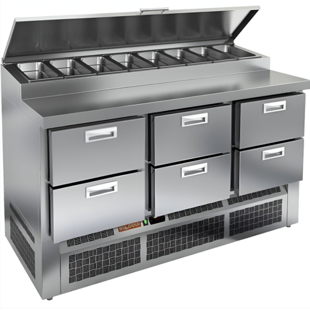 Каталог оборудования Холодильное оборудованиеСтолы охлаждаемыеСтолы холодильные для пиццыСтол холодильный для пиццы HiCold PZE1-222GN (1/3) Стол холодильный для пиццы HiCold PZE1-222GN (1/3) Код товара: 064-727 Поделиться: WhatsAppTelegram СравнитьДобавить в КПВ избранное 0 278 361 ₽ В корзину 0 шт Под заказСамовывоз сегодня бесплатно Взять в кредит Купить в лизинг Получить консультацию в WhatsApp Описание Характеристики Отзывы 0 Стол холодильный для пиццы HiCold PZE1-222GN (1/3) — профессиональное оборудование для предприятий общественного питания и торговли. Он предназначен для раскатки теста и подготовки ингредиентов, используемых при приготовлении пиццы, салатов и других блюд, а также для охлаждения и кратковременного хранения скоропортящихся продуктов и напитков. Совмещение рабочей поверхности и охлаждаемого блока значительно упрощает работу повара — все необходимые компоненты находятся под рукой. Корпус и столешница выполнены из нержавеющей стали, обеспечивая долговечность, устойчивость к повреждениям и лёгкость ухода. Основные особенности: Динамическая система охлаждения — равномерное распределение холода по всему объёму Автоматическая оттайка — стабильная работа без образования наледи Электронная панель управления — точная настройка температуры 6 выдвижных ящика — удобная организация внутреннего пространства Автоматические доводчики ящиков — комфорт при работе Легкозаменяемые магнитные уплотнители — поддержание герметичности Открытая агрегатная часть — лёгкий доступ к техническим элементам Регулируемые по высоте ножки — установка на неровных поверхностях Максимальная глубина гастроёмкостей: 100 мм Глубина рабочей поверхности: 324 мм Толщина столешницы: 50 мм Толщина теплоизоляции: 50 мм Вместимость салат-бара: до 8 гастроёмкостей HiCold PZE1-222GN (1/3) с четырьмя выдвижными ящиками — надёжный и функциональный холодильный стол для пиццы и салатов. Продуманная организация хранения и удобство эксплуатации обеспечивают быстрый доступ к ингредиентам и повышают производительность на профессиональной кухне.Изображение товара, представленного на фото, может отличаться от его фактического вида. Показать все Габаритные размеры1485×700×990 ммДиапазон рабочей температурыот +2 до +10 °CРасположение агрегатаНижнее Материал столешницыНержавеющая Тип столаС ящиками Объём375 лТип гастроемкостейGN 1/3 Количество ящиков6 штНапряжение220 ВМощность0,22 кВтТип охлажденияДинамическое Тип оттайкиАвтоматическая Габариты в упаковке1680×840×1170 ммВес нетто115 кгВес брутто153 кгБрендHicoldВсе холодильные столы для пиццы HicoldВсе нержавеющие холодильные столы для пиццы Оставить отзыв Еще никто не оставил отзыв на этот товар Ранее просмотрено Под заказ 273 142 ₽ Стол холодильный для пиццы HiCold PZ1-1111GN (1/3) M Под заказ 260 272 ₽ Стол холодильный для пиццы HiCold PZ1-113GN (1/3H)