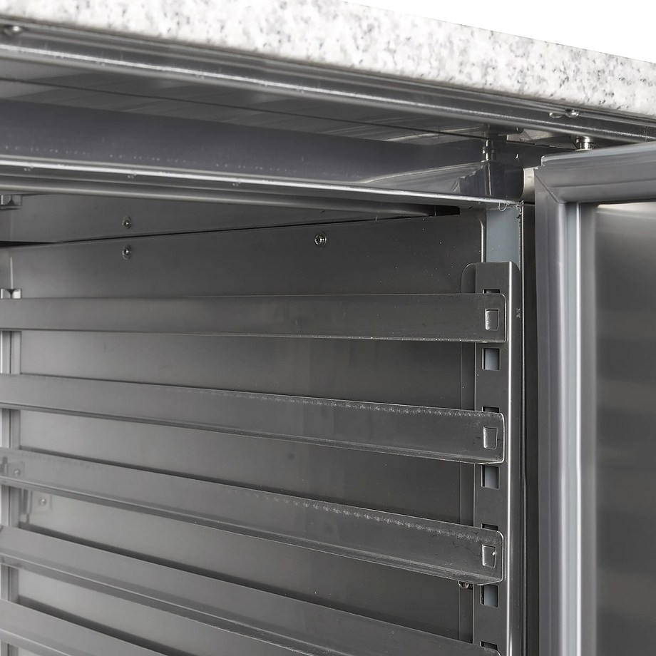 Каталог оборудования Холодильное оборудованиеСтолы охлаждаемыеСтолы холодильные для пиццыСтол холодильный для пиццы TEFCOLD PT1310 Стол холодильный для пиццы TEFCOLD PT1310 Код товара: 066-710 Поделиться: WhatsAppTelegram 0 Цена по запросу Получить консультацию в WhatsApp Описание Характеристики Отзывы 0 Стол холодильный для пиццы TEFCOLD PT1310 предназначен для обработки ингредиентов, охлаждения и кратковременного хранения продуктов на предприятиях общественного питания и торговли. Корпус и внутренняя обшивка выполнены из нержавеющей стали AISI 304, что обеспечивает долговечность и простоту ухода. Особенности: Динамическое охлаждение для равномерного поддержания температуры; Автоматическое размораживание; Электронный термостат с цифровой индикацией; Экологически безопасный хладагент R600a; Самозакрывающиеся двери для удобства эксплуатации; Градусник для контроля температуры; Секция с ящиками без охлаждения для хранения ингредиентов; 7 комплектов направляющих для поддонов для пиццы; 8 регулируемых по высоте ножек; Климатический класс 4; Полезный объем: 370 л; Энергопотребление: 2,41 кВт/сутки; Уровень шума: 42 дБ; Масса хладагента: 0,095 кг; Внутренние размеры: 1052×630×589 мм. TEFCOLD PT1310 — это надёжный и функциональный стол для профессиональных кухонь, обеспечивающий эффективное охлаждение, хранение и удобный доступ к ингредиентам для приготовления пиццы. Прочный корпус из нержавеющей стали и динамическая система охлаждения делают эксплуатацию простой и долговечной.Изображение товара, представленного на фото, может отличаться от его фактического вида. Показать все Габаритные размеры2045×800×1445 ммДиапазон рабочей температурыот +2 до +10 °CРасположение агрегатаБоковое Материал столешницыГранитная Тип столаС ящиками Тип двериГлухая Полезный объем370 лОбъём390 лКоличество дверей2 штКоличество ящиков7 штРазмер полки400×600 ммНапряжение220 ВМощность0,3 кВтРасход электроэнергии в сутки2,41 кВтТип охлажденияДинамическое Тип оттайкиАвтоматическая ХладагентR600a СтолешницаС бортом Габариты в упаковке2050×840×1050 ммВес нетто320 кгБрендTefcold Оставить отзыв Еще никто не оставил отзыв на этот товар Ранее просмотрено Под заказ 135 451 ₽ Сплит-система холодильная среднетемпературная Belluna Лайт S232 W (с зимним комплектом)