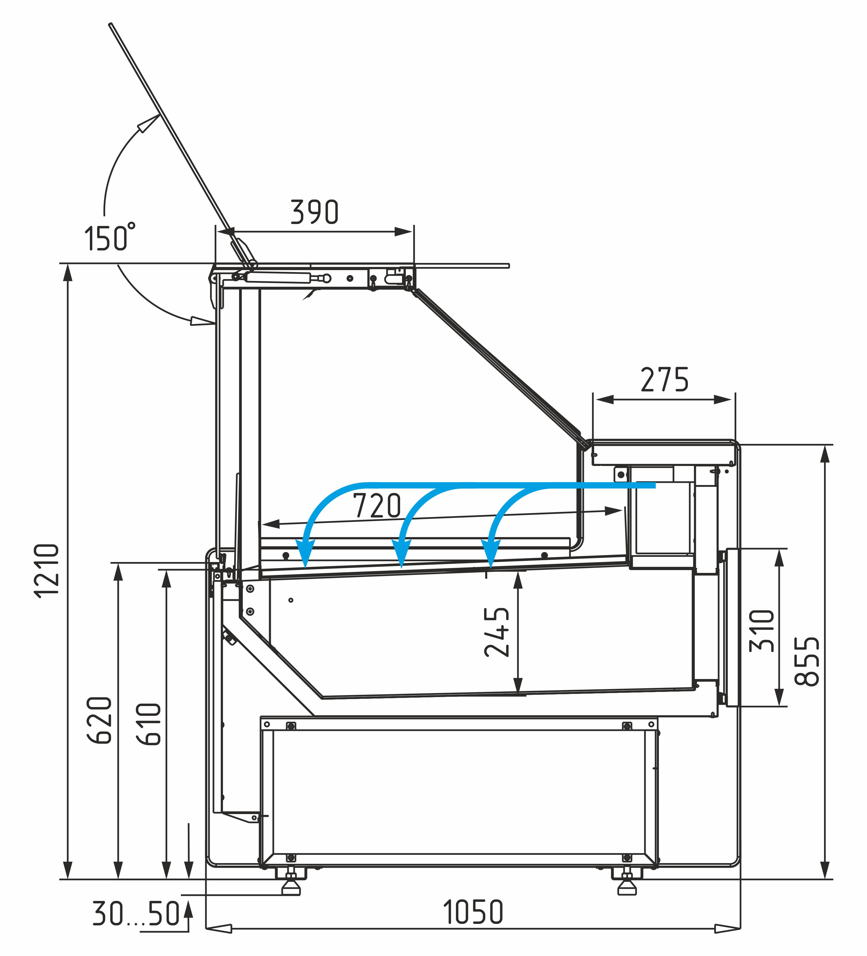 • Отбойник холода — снижает потери температуры при открытии витрины.