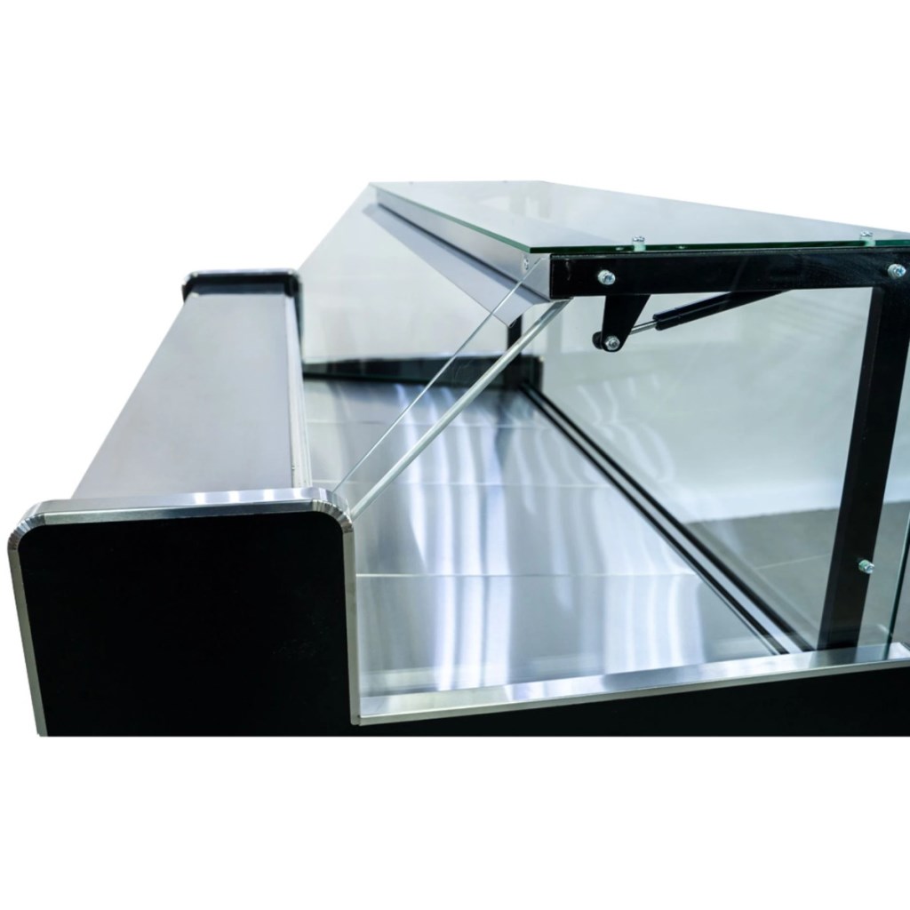 Каталог оборудования Холодильное оборудованиеВитрины холодильныеВитрины холодильные среднетемпературные от 0 до +5 °СВитрина холодильная Ангара 2 КУБ 1,0 динамика Витрина холодильная Ангара 2 КУБ 1,0 динамика Код товара: 066-467 Поделиться: WhatsAppTelegram СравнитьДобавить в КПВ избранное 0 79 600 ₽ В корзину 0 шт В наличииСамовывоз сегодня бесплатно Взять в кредит Купить в лизинг Получить консультацию в WhatsApp Описание Характеристики Отзывы 0 Витрина холодильная Ангара 2 КУБ 1,0 динамика предназначена для демонстрации и кратковременного хранения пищевых продуктов. Обеспечивает поддержание заданной температуры предварительно охлаждённых продуктов и органично вписывается в оформление любого торгового зала или открытой площадки. Особенности: Динамическое охлаждение с равномерным распределением воздушных потоков по всей камере Встроенный компрессорный холодильный агрегат Embraco Aspera или Secop (Danfoss) Надёжный микродвигатель EBM-PAPST Прямое лобовое стекло и боковые стекла толщиной 6 мм, ударопрочные Материалы: поверхность выкладки – нержавеющая сталь, подтоварники – оцинкованная сталь с полимерным покрытием, столешницы – нержавеющая сталь Два вместительных подтоварника для хранения продукции Автоматическое оттаивание испарителя с отводом талой воды в ёмкость в агрегатном отсеке Электронное управление температурой через блок Elitech ETC-974 (2 датчика, усиленное реле) Светодиодное LED-освещение – яркое, энергосберегающее, с низким тепловыделением, включается кнопкой на панели управления Автомат IEK для надёжного включения/выключения витрины Ровное расположение витрины благодаря регулируемым опорам, правильный сбор конденсата и бесшумная работа Равномерное распределение температуры по объёму камеры без образования льда и инея Хладагент – экологичный и нетоксичный R-134a, R-404a Испаритель SEST LUVE от итальянского производителя Комплектация: 2 подтоварника / электронный блок управления Температура окружающей среды: +12…+35 °C Ангара 2 КУБ 1,0 – надёжная и вместительная витрина для демонстрации и хранения предварительно охлаждённых продуктов. Отличается равномерным охлаждением, ярким LED-освещением, автоматическим оттаиванием и прочными материалами, что делает её идеальным решением для больших торговых залов и открытых площадок.Изображение товара, представленного на фото, может отличаться от его фактического вида. Показать все Габаритные размеры1020×980×1260 ммДиапазон рабочей температурыот 0 до +5 °CПлощадь выкладки0,68 м²Длина1020 ммГлубина980 ммВысота1260 ммНоминальная мощность162 ВтРазмер выкладки654 ммПолезный объем160 лХолодообеспечениеВстроенное Тип охлажденияДинамическое Тип оттайкиАвтоматическая Температура эксплуатацииот +12 до +35 °CПодсветкаЕсть ХладагентR134a, R404a Напряжение220 ВРасход электроэнергии в сутки3,9 кВт/сутГабариты в упаковке1200×1350×1200 ммОбъём (брутто)1,94 м³Вес нетто120 кгВес брутто220 кгБрендАнгараВсе витрины холодильные среднетемпературные от 0 до +5 °С 1,0 м Оставить отзыв Еще никто не оставил отзыв на этот товар