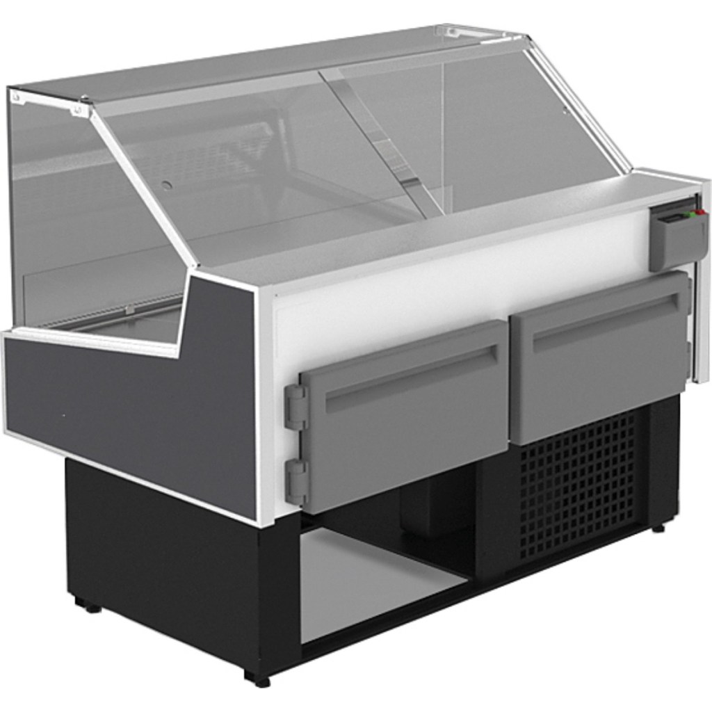 Витрина оснащена прямым фронтальным стеклом, энергоэффективной LED-подсветкой и вместительной охлаждаемой камерой для хранения запаса товара. Экспозиционная и рабочая поверхности выполнены из нержавеющей стали, а теплоизоляция из пенополиуретана способствует стабильному поддержанию заданного температурного режима.